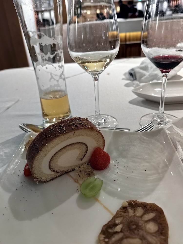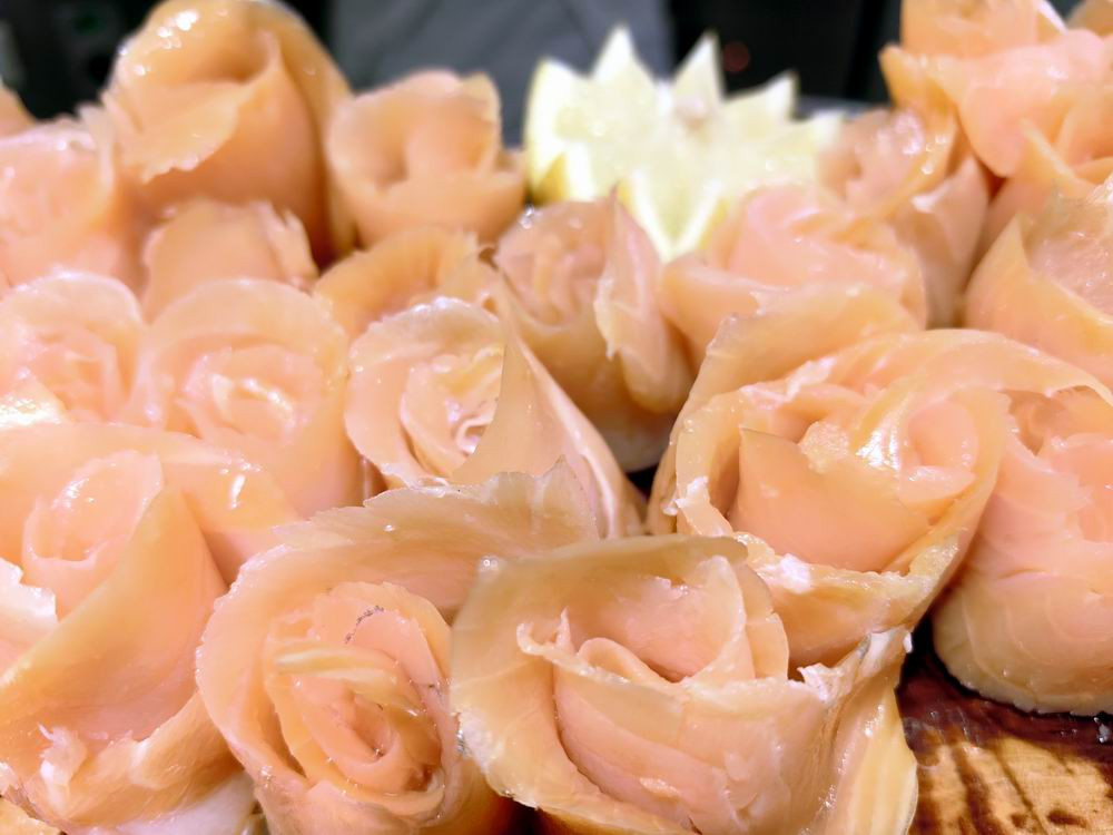 除了菜单上的菜肴,还有自助餐台。艾斯特拉号的自助餐台分成几个区域, 有拿热菜和主食的地方, 有拿面包、芝士、火腿、生鱼片、烟熏三文鱼等冷餐的地方。