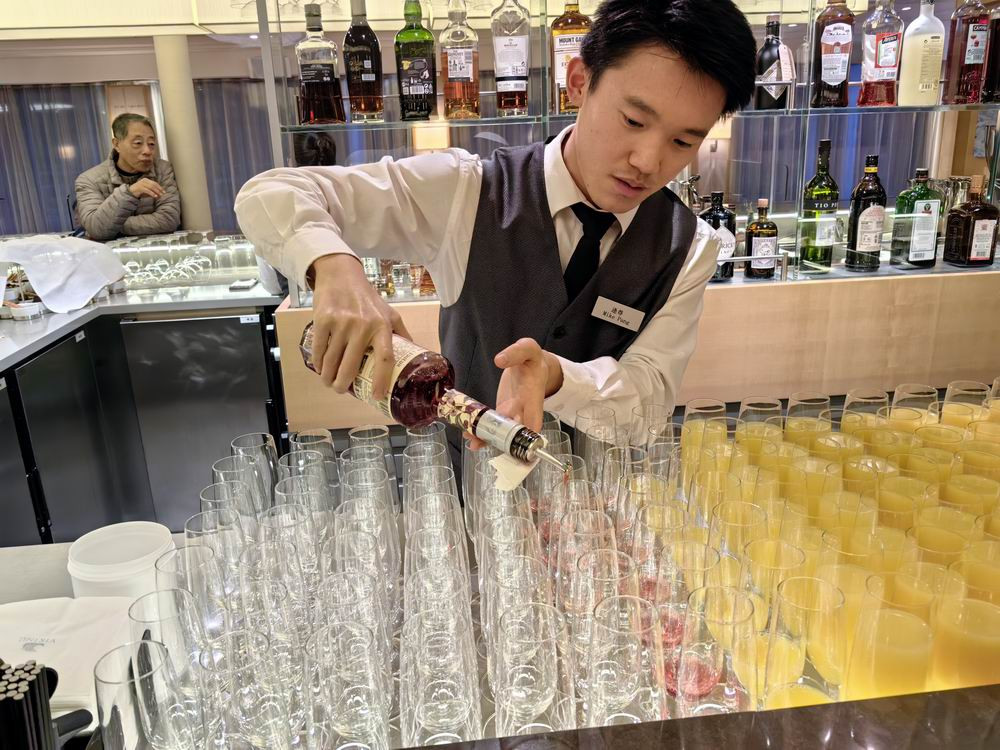 船长见面会上,大家喝的是香槟、鸡尾酒和饮料。