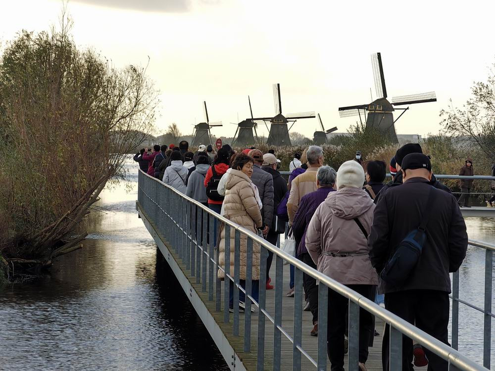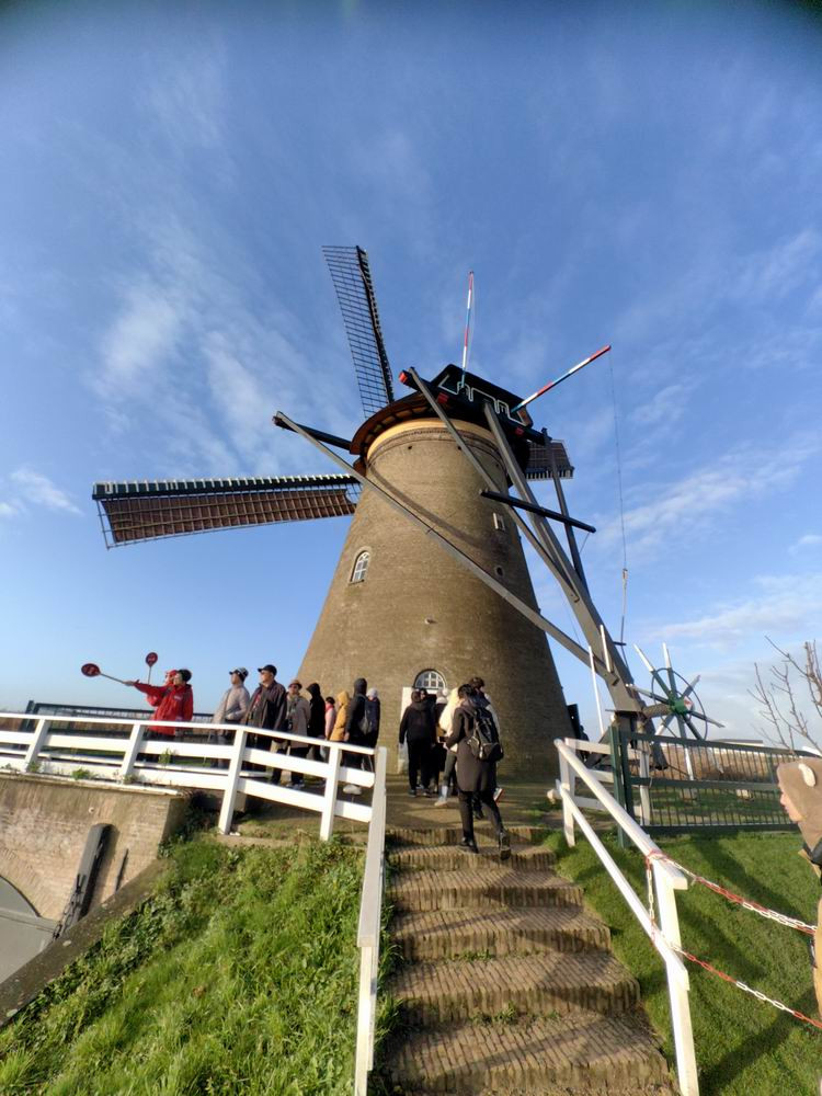 古老的风车一架架打转着,幸运的是天气正好,要知道在荷兰一年当中几乎只有70多天是晴天,被我们赶上了。