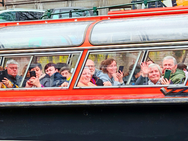 结束了荷兰海事博物馆的参观,团队于当日下午15:40,进行阿姆斯特丹一日游的最后一站行程。在领队马曼曼的带领下,大家经过阿姆斯特丹火车站,来到情人运河游船码头登船,泛舟阿姆斯特丹运河环游。