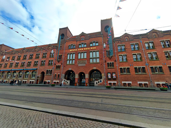 沿着达姆拉克大街向南漫步,首先映入眼帘的是雄伟的贝居安努斯证券交易所大楼(Beurs van Berlage)。这座建于19世纪末的红砖建筑,有着独特的铁制和玻璃屋顶,以及高耸的钟楼,散发着浓郁的历史气息。