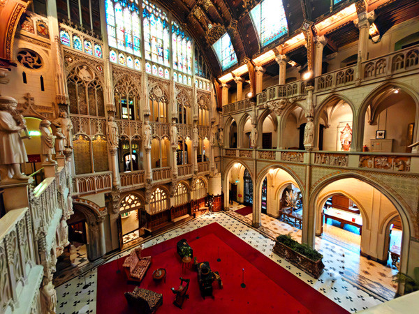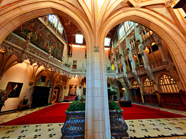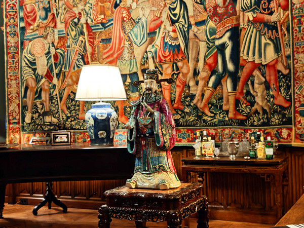 进入城堡里,视野所见,仿佛穿越回了中世纪。大厅的天花板上是精美的木雕,墙壁上挂着古老的画作和佛兰芒挂毯,还有来自日本和中国的精美瓷器、家具,每一件物品都诉说着城堡的历史和曾经主人的奢华生活。