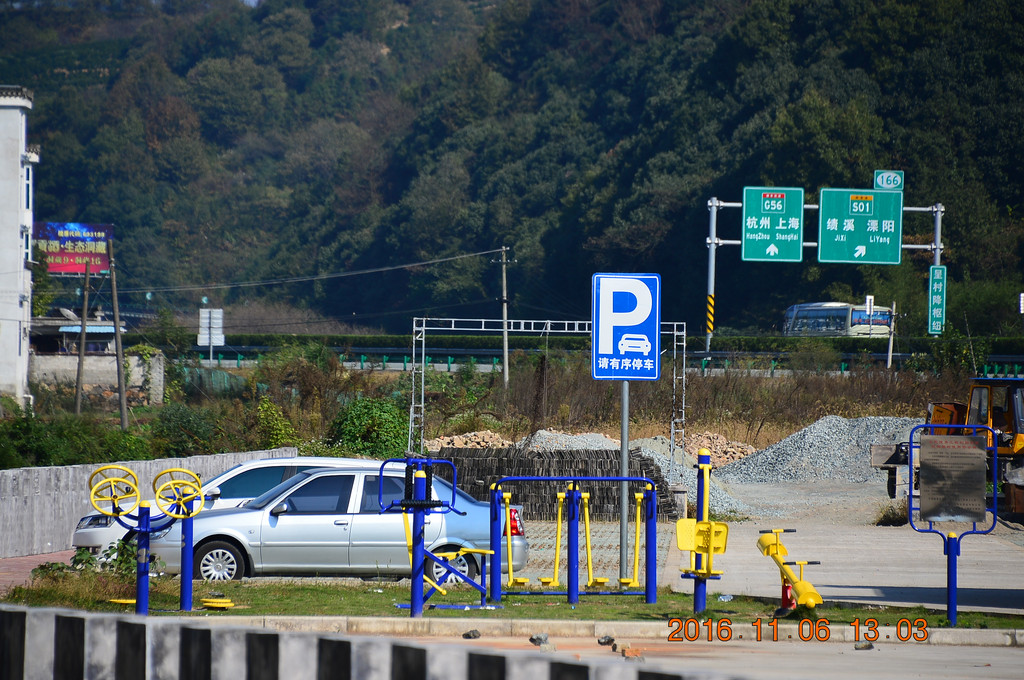 下图摄于三阳服务区,前方是杭徽高速徽浙交界处的收费站。