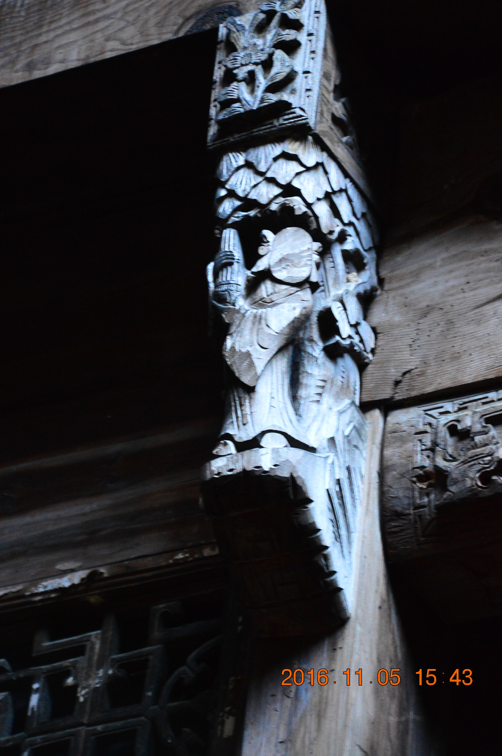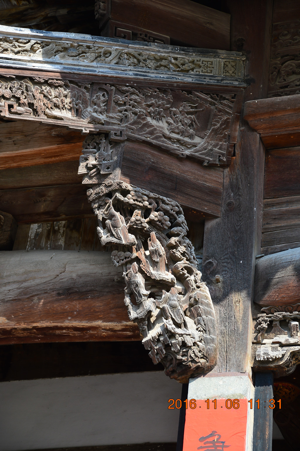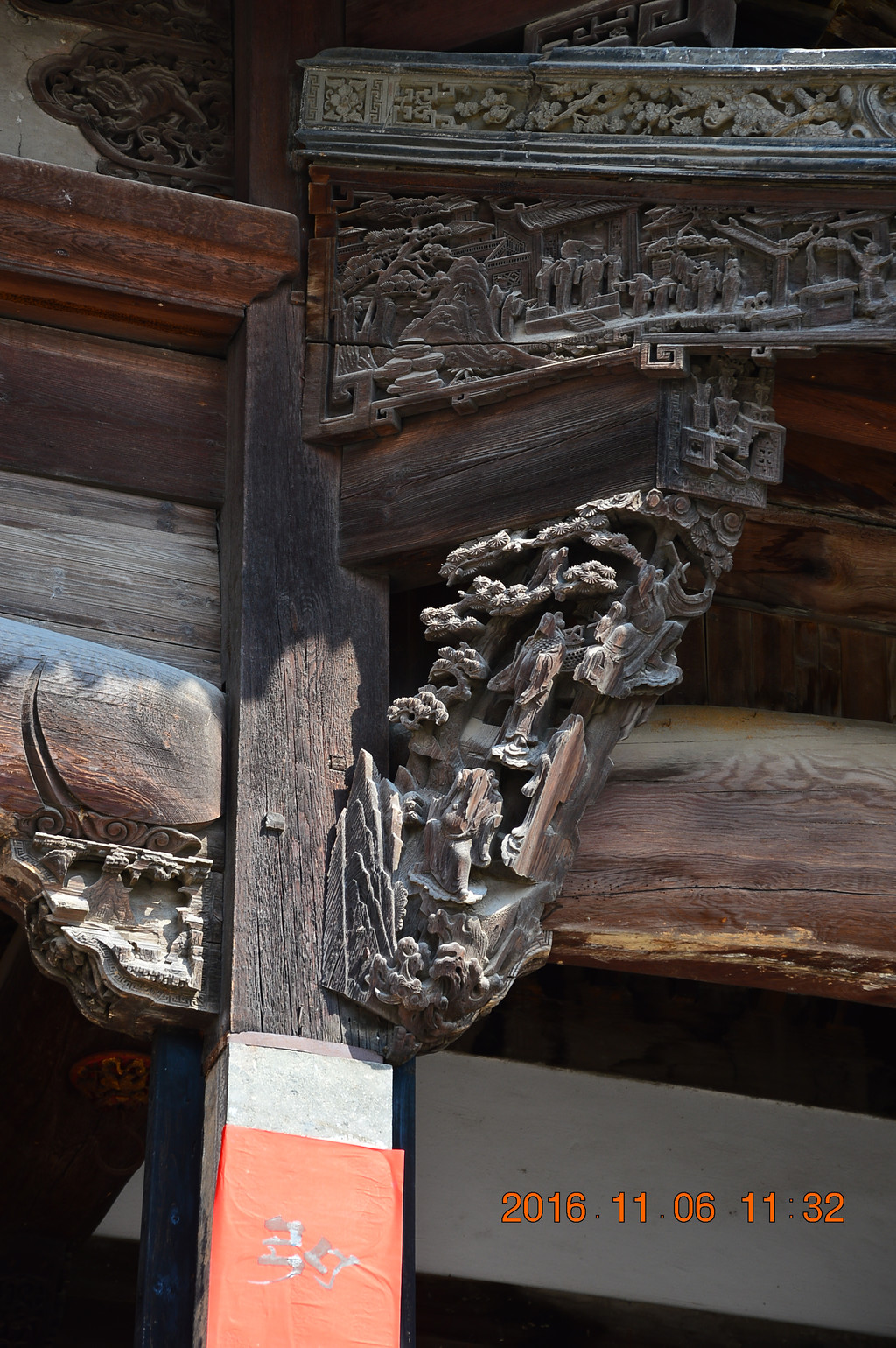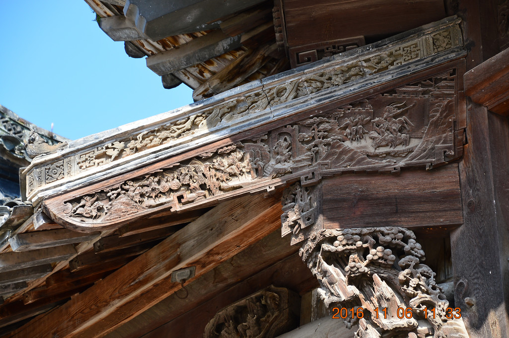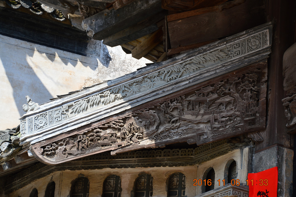 卢村最有价值的古建筑是木雕楼,包括志诚堂、思济堂、思成堂、玻璃厅等宅院。志诚堂建于清道光年间,仅木雕一项便由4个工匠用了25年时间才得以完成。可惜的是,木雕人物形象的脸部基本都在文革中被强制铲掉了。后来,我发现西递村、南屏村的古建筑木雕都存在同一现象。