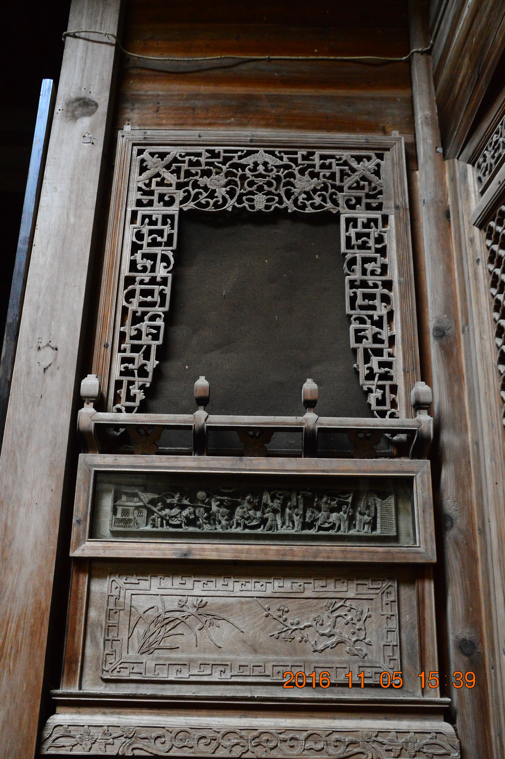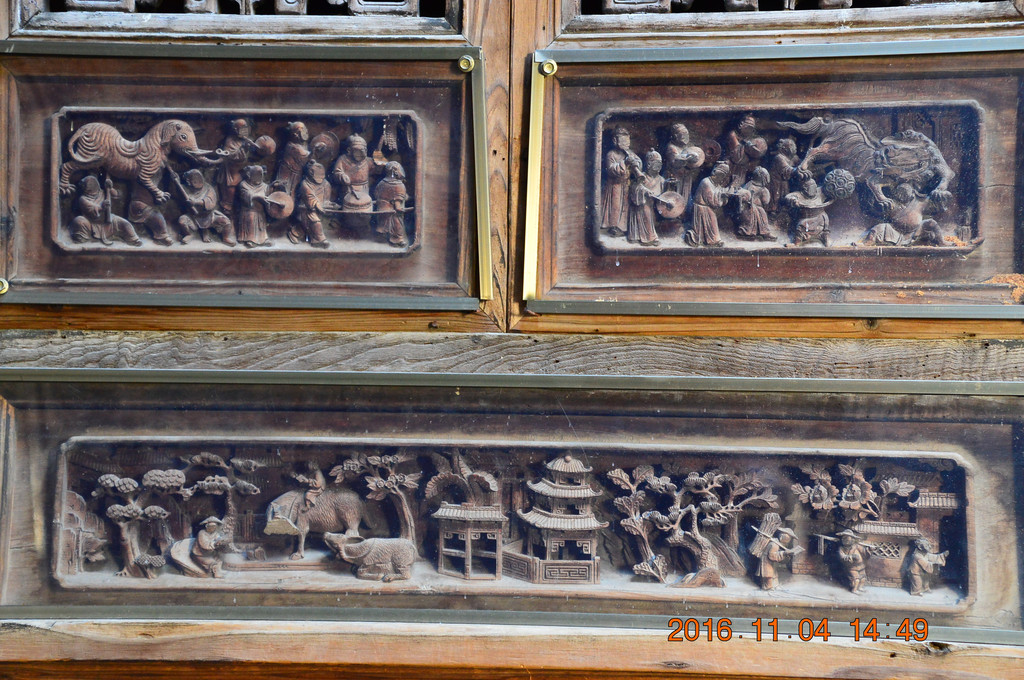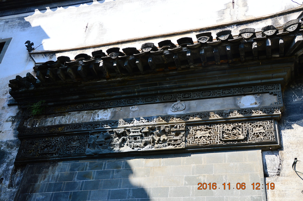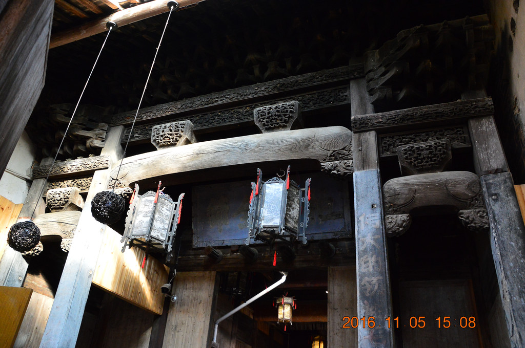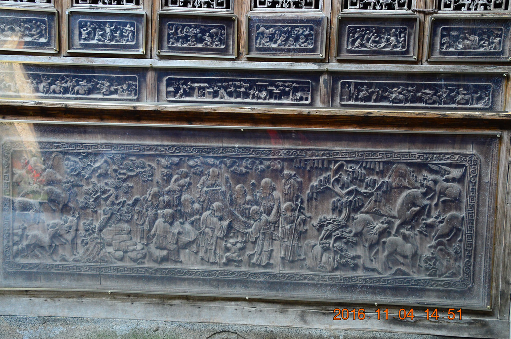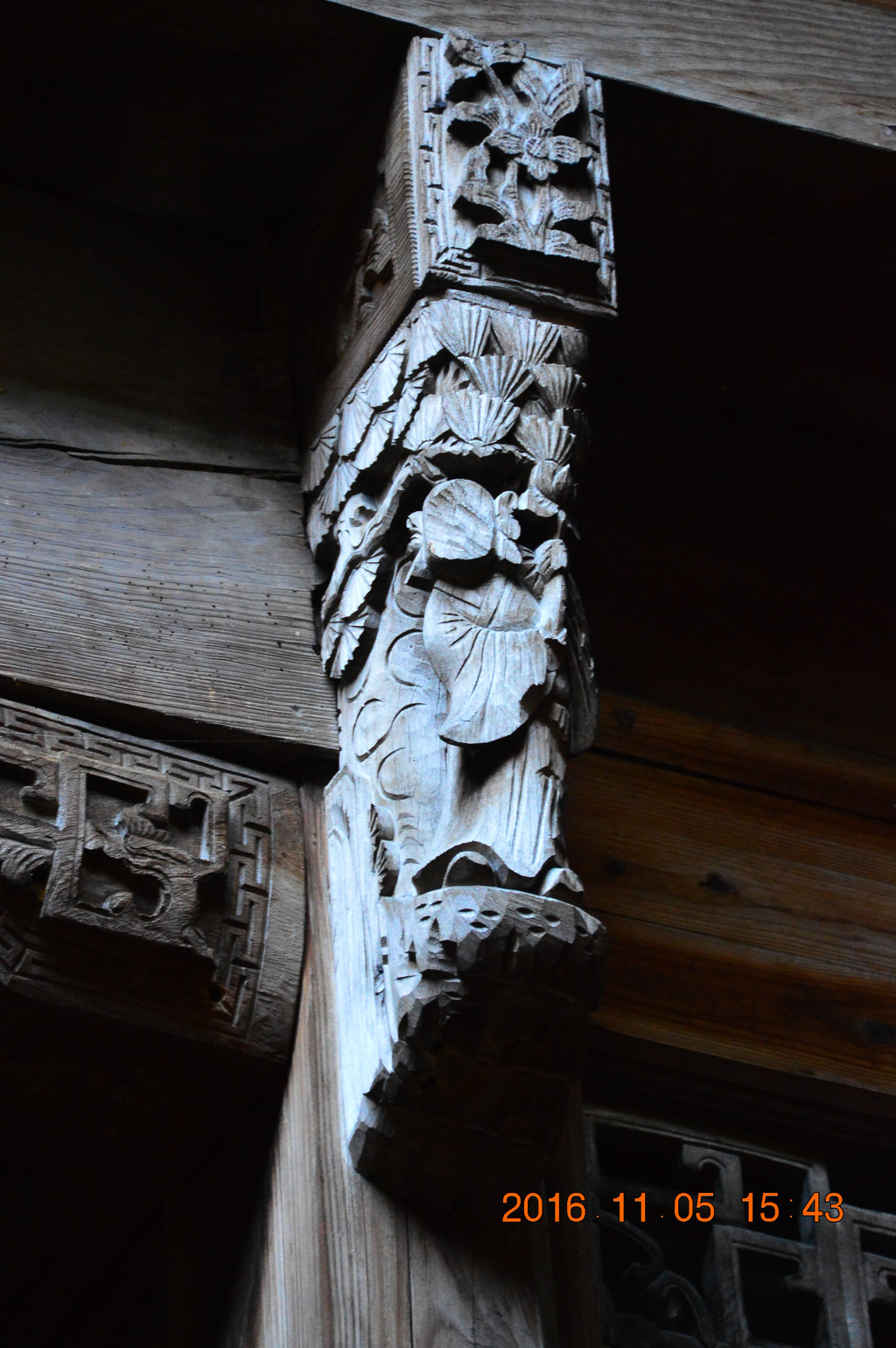 卢村最有价值的古建筑是木雕楼,包括志诚堂、思济堂、思成堂、玻璃厅等宅院。志诚堂建于清道光年间,仅木雕一项便由4个工匠用了25年时间才得以完成。可惜的是,木雕人物形象的脸部基本都在文革中被强制铲掉了。后来,我发现西递村、南屏村的古建筑木雕都存在同一现象。