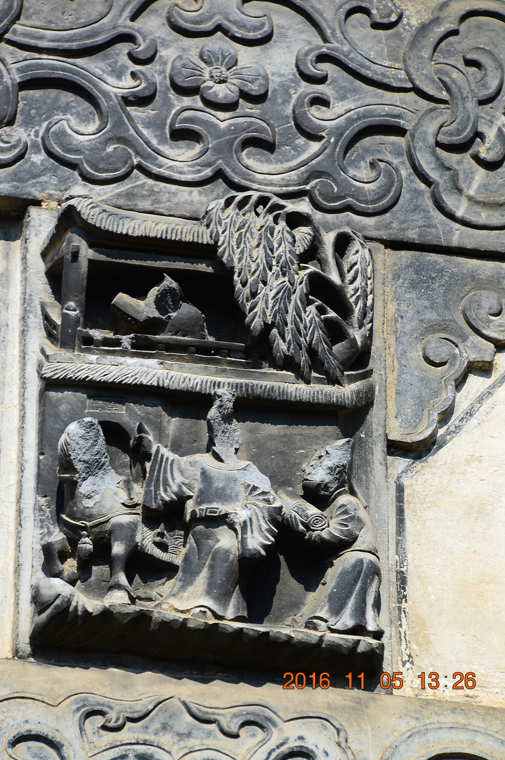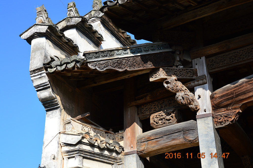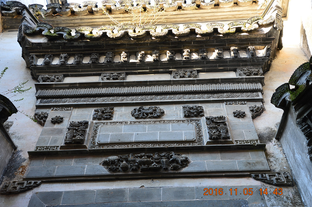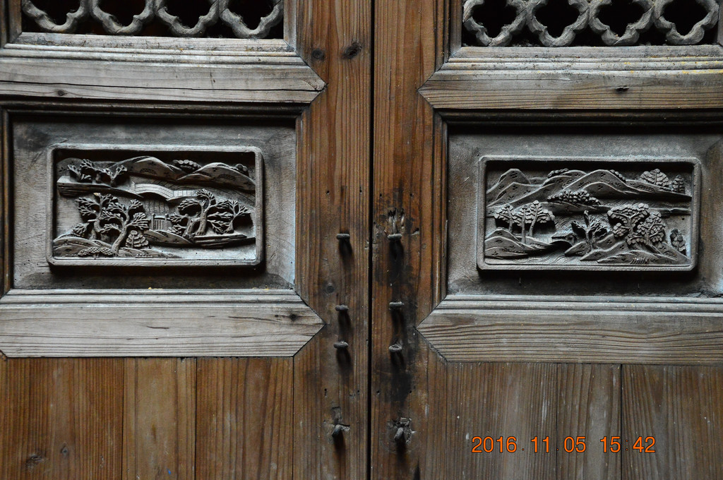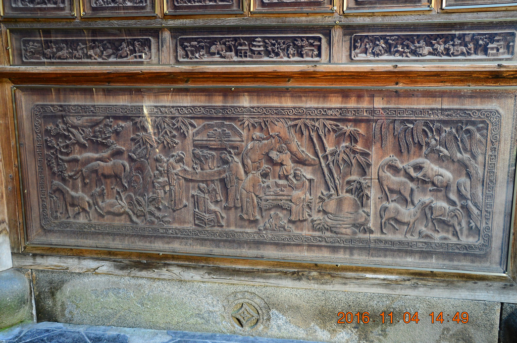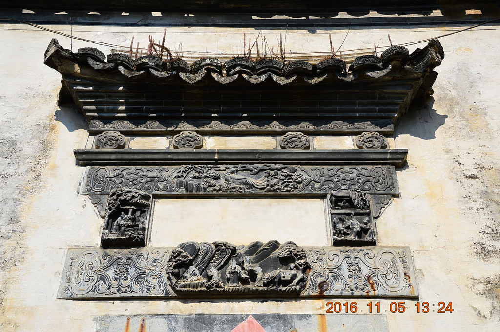 卢村最有价值的古建筑是木雕楼,包括志诚堂、思济堂、思成堂、玻璃厅等宅院。志诚堂建于清道光年间,仅木雕一项便由4个工匠用了25年时间才得以完成。可惜的是,木雕人物形象的脸部基本都在文革中被强制铲掉了。后来,我发现西递村、南屏村的古建筑木雕都存在同一现象。