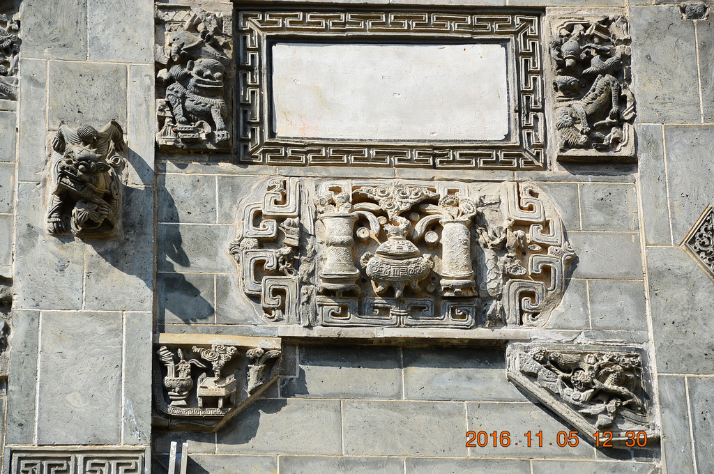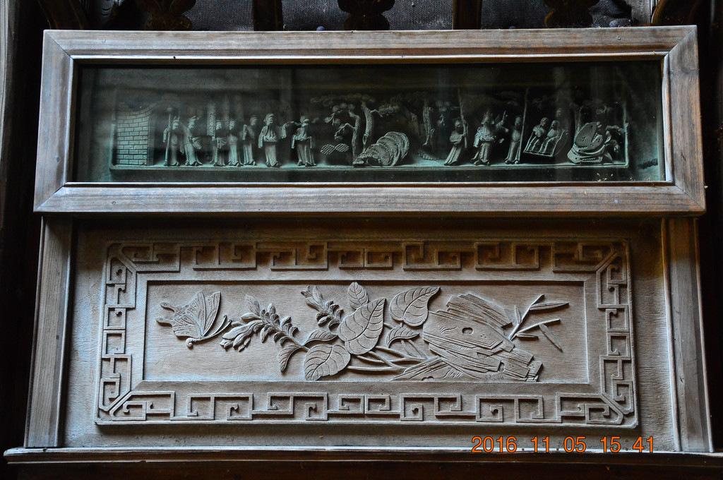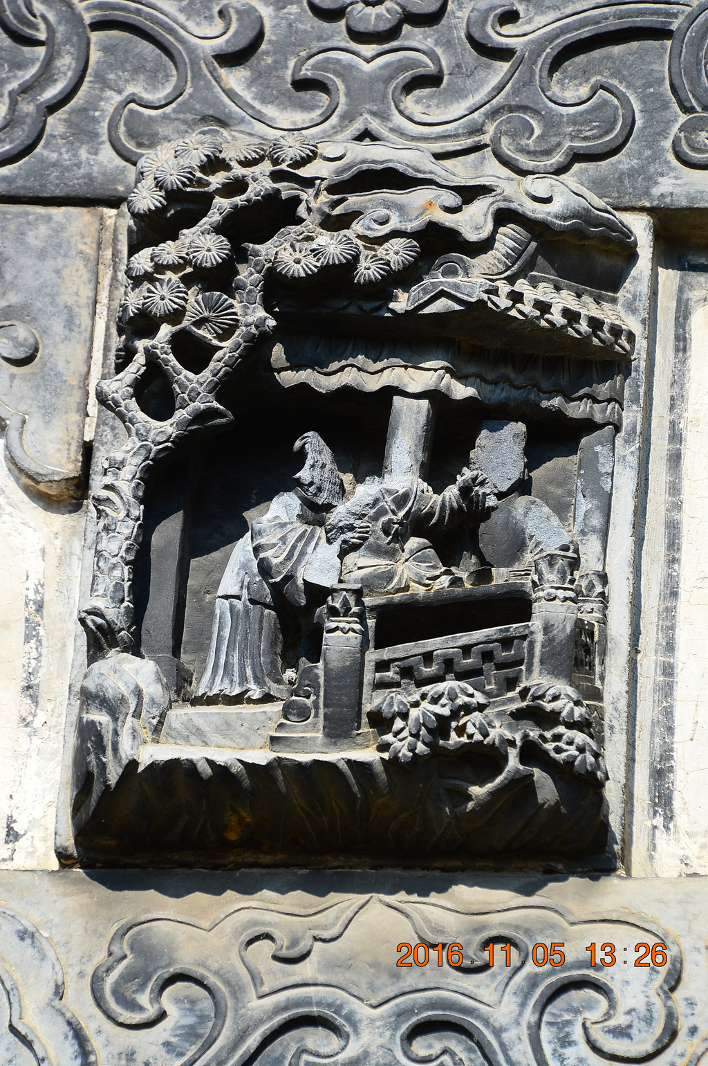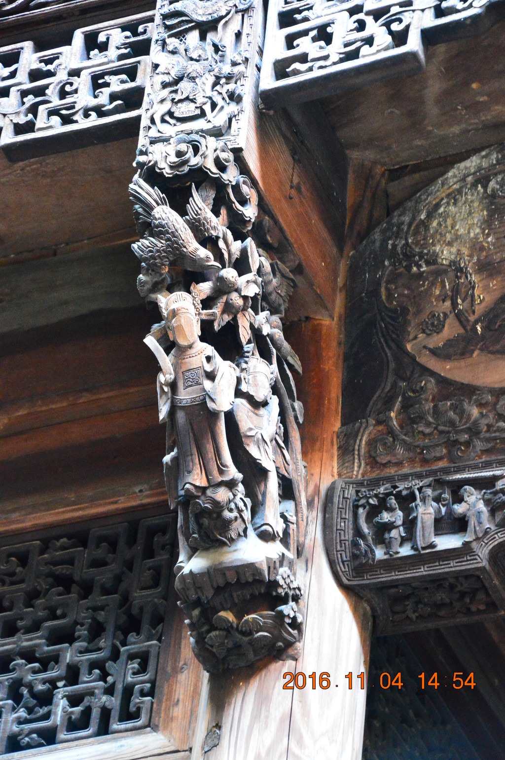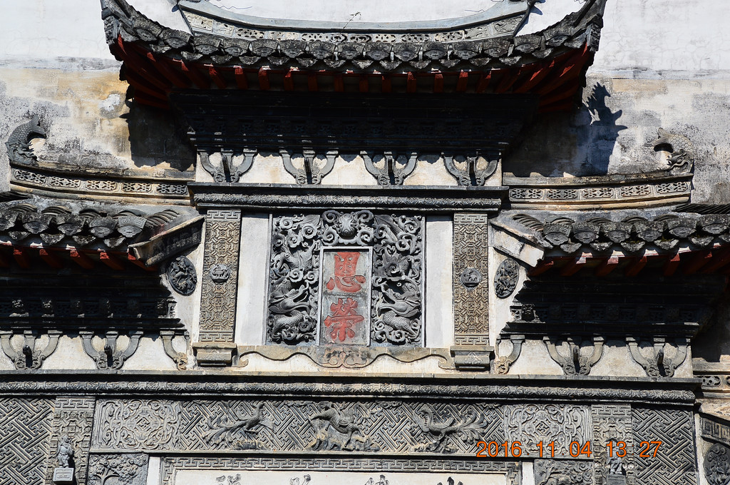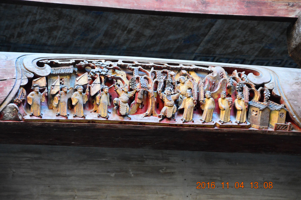 卢村最有价值的古建筑是木雕楼,包括志诚堂、思济堂、思成堂、玻璃厅等宅院。志诚堂建于清道光年间,仅木雕一项便由4个工匠用了25年时间才得以完成。可惜的是,木雕人物形象的脸部基本都在文革中被强制铲掉了。后来,我发现西递村、南屏村的古建筑木雕都存在同一现象。