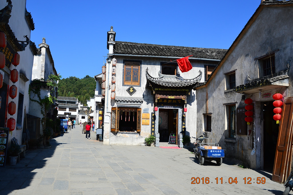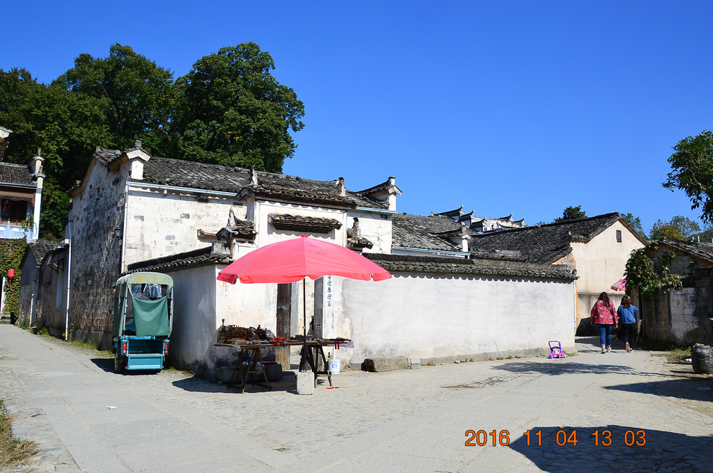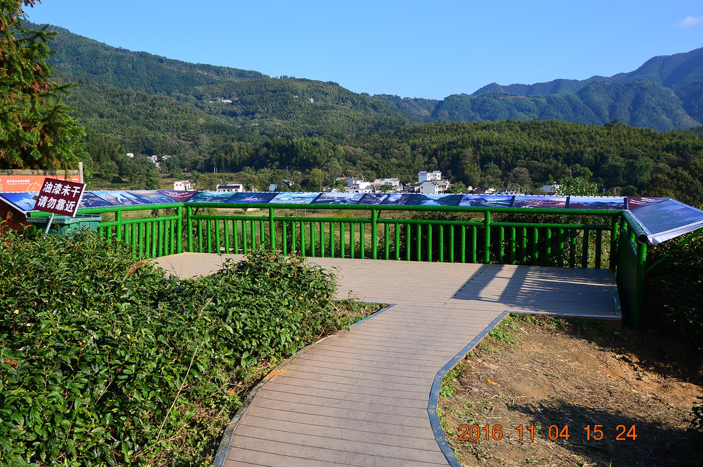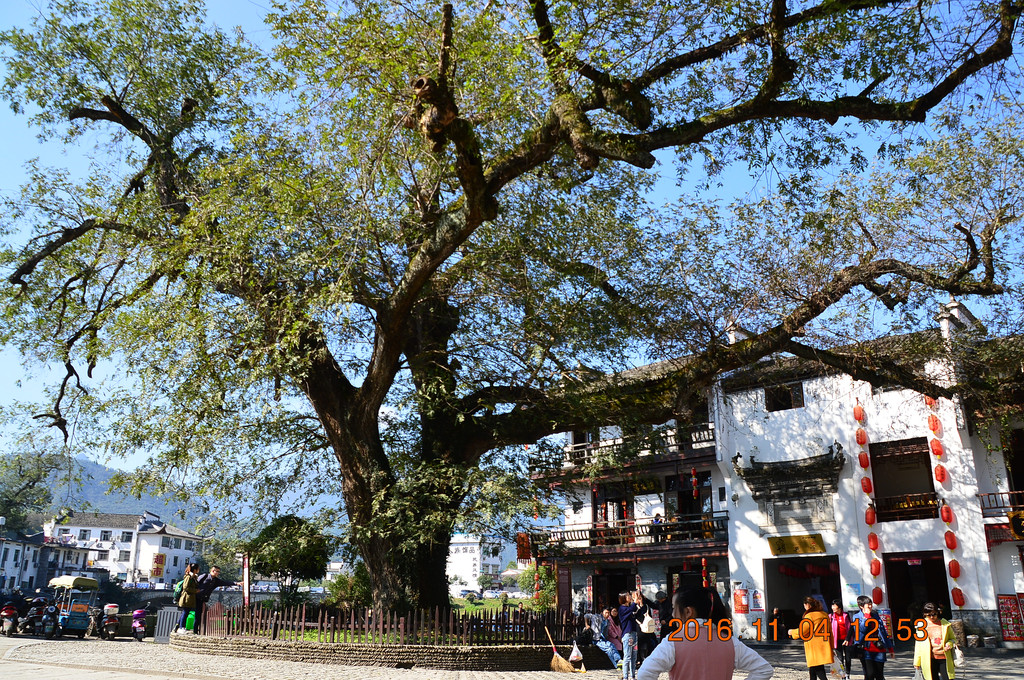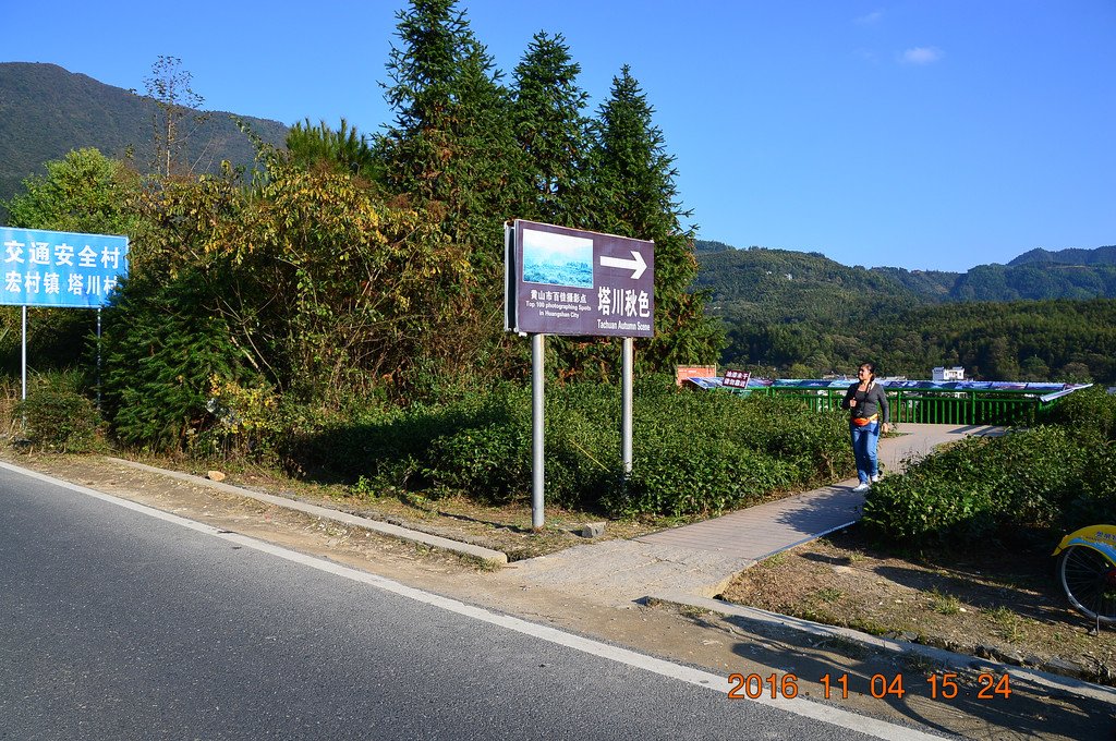 返回屯溪,再驾车走030县道,距离宏村约1公里处是塔川村。“塔川秋色”的名气很响,被誉为全国三大秋色之一。村口及周边植有很多乌桕树,常年古树参天,每到秋季,山上、村子道路旁的树叶色彩斑斓,村中粉墙黛瓦掩映其中,是摄影爱好者必去的摄影胜地。在县道边的观景台,可以“塔川秋色”。不过,由于今年入秋气候偏暖,我所见到的是一片绿色。
