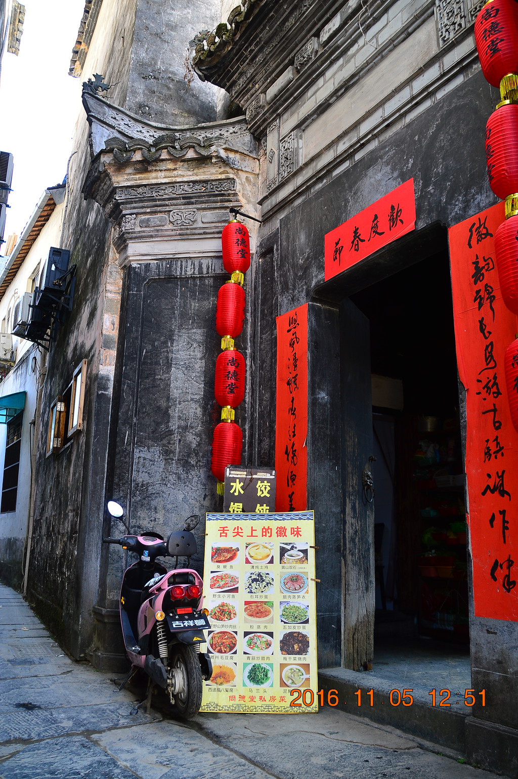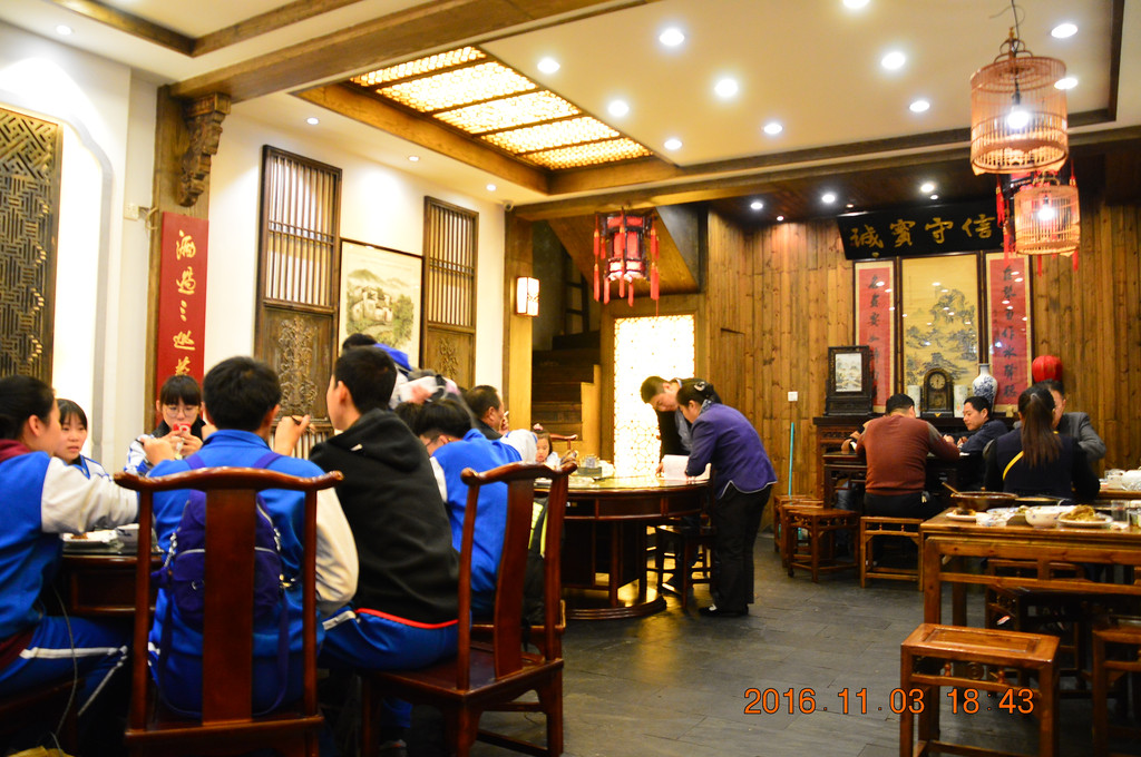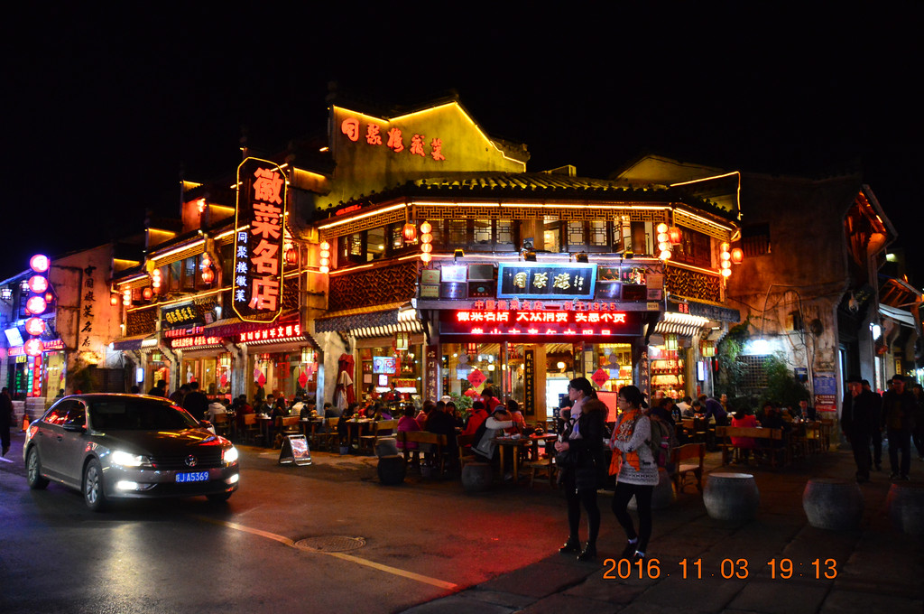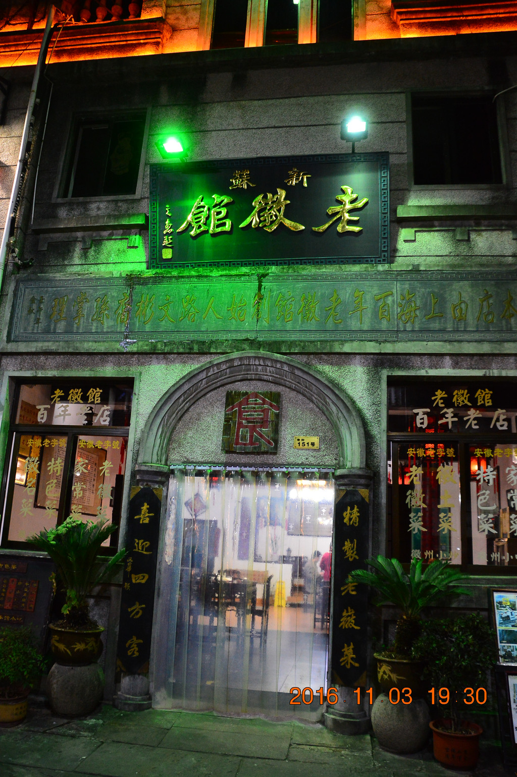 到黄山市旅游,不可错过品尝徽菜。徽菜是中国八大菜系之一,重油重色,上海人比较喜欢。屯溪老街周边有不少徽菜餐馆,我们选了屯溪老街下马路口的同聚楼,价格不算很贵。