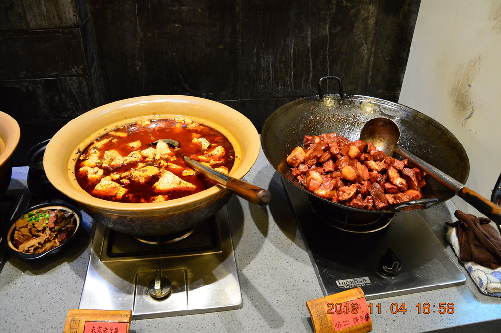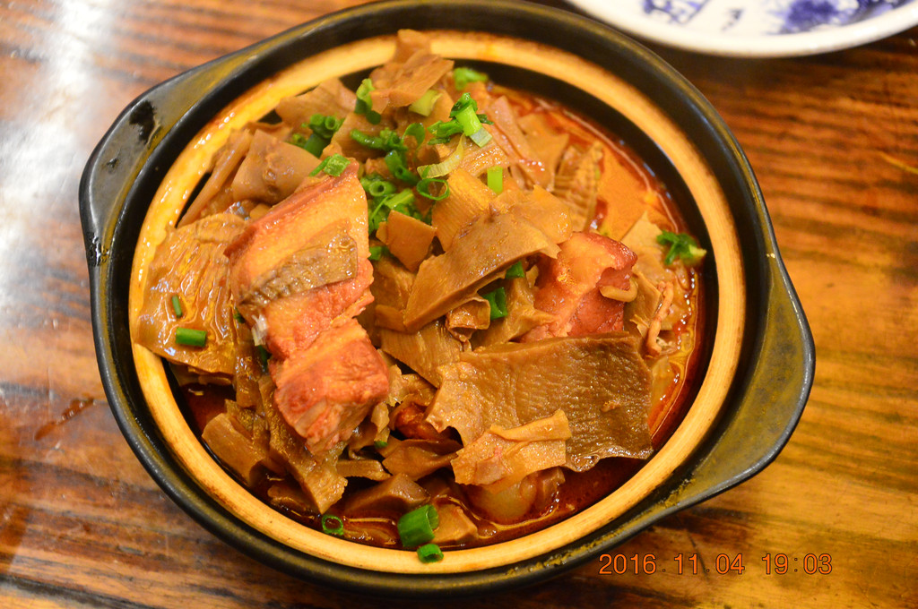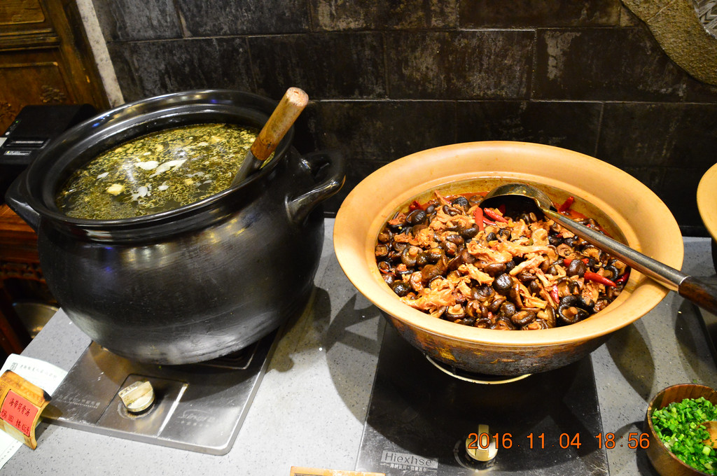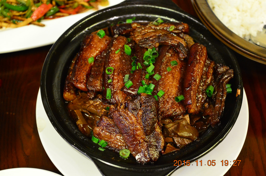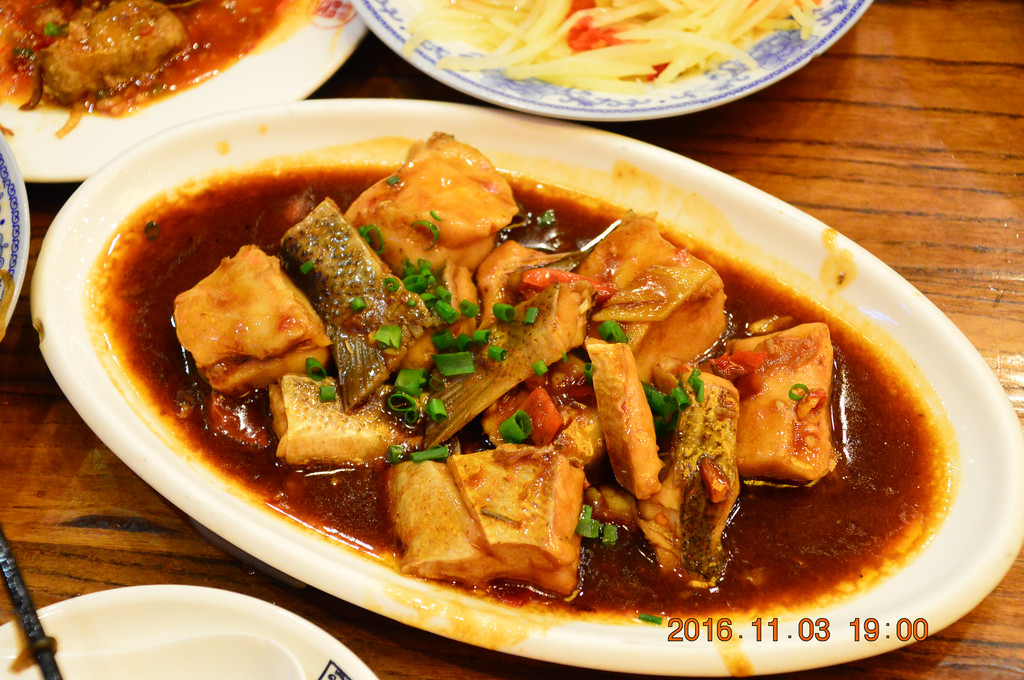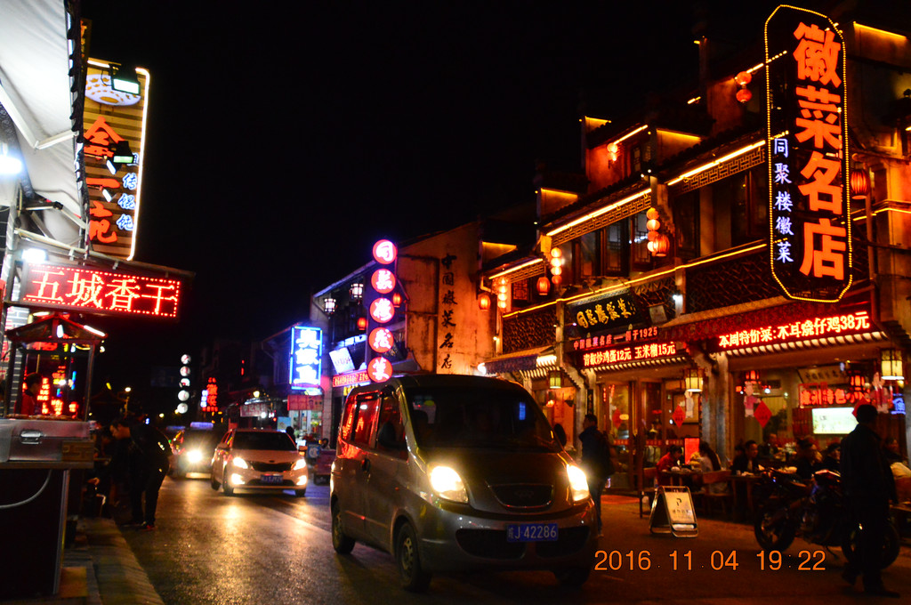 到黄山市旅游,不可错过品尝徽菜。徽菜是中国八大菜系之一,重油重色,上海人比较喜欢。屯溪老街周边有不少徽菜餐馆,我们选了屯溪老街下马路口的同聚楼,价格不算很贵。