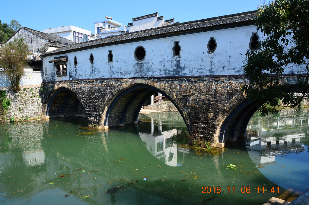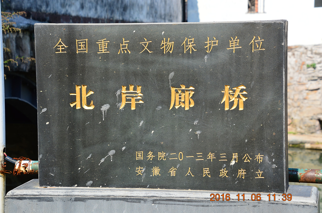 北岸廊桥,国务院2013年3月5日公布的第七批全国重点文物保护单位,古建筑类,时代为清。北岸廊桥被誉为古徽州最美丽的廊桥,位于歙县北岸村。此村为第三批获评的中国传统村落,不收门票。