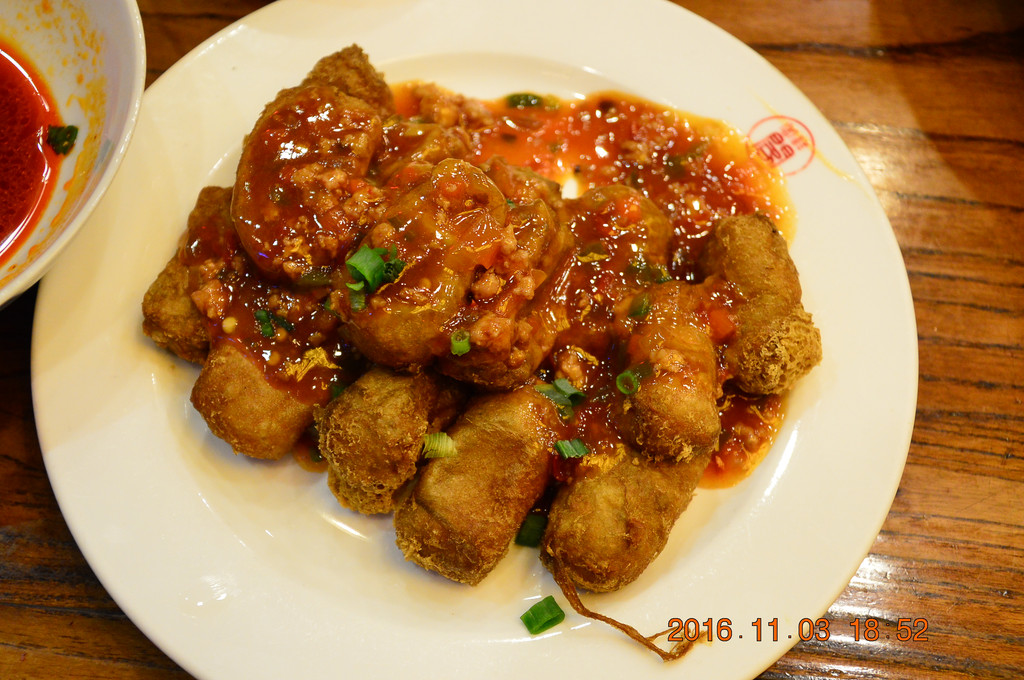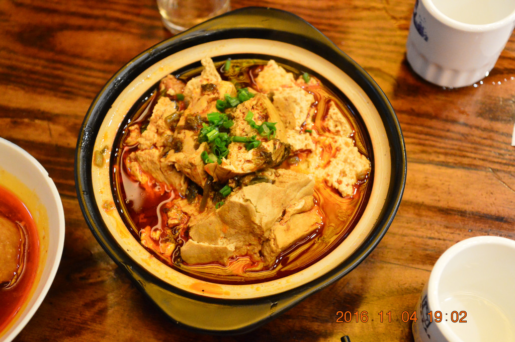 毛豆腐,徽州地区的特色传统名菜,通过人工发酵法使豆腐表面生长出一层白色茸毛。