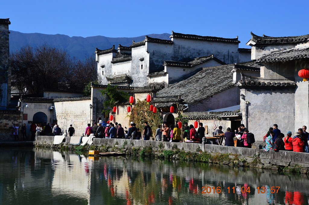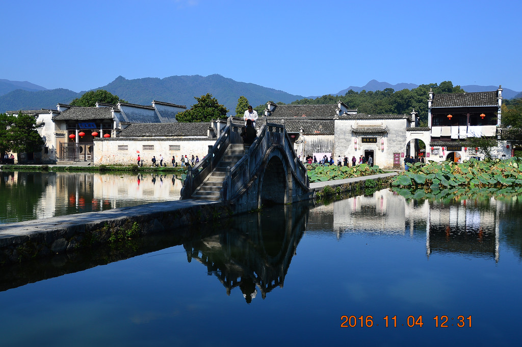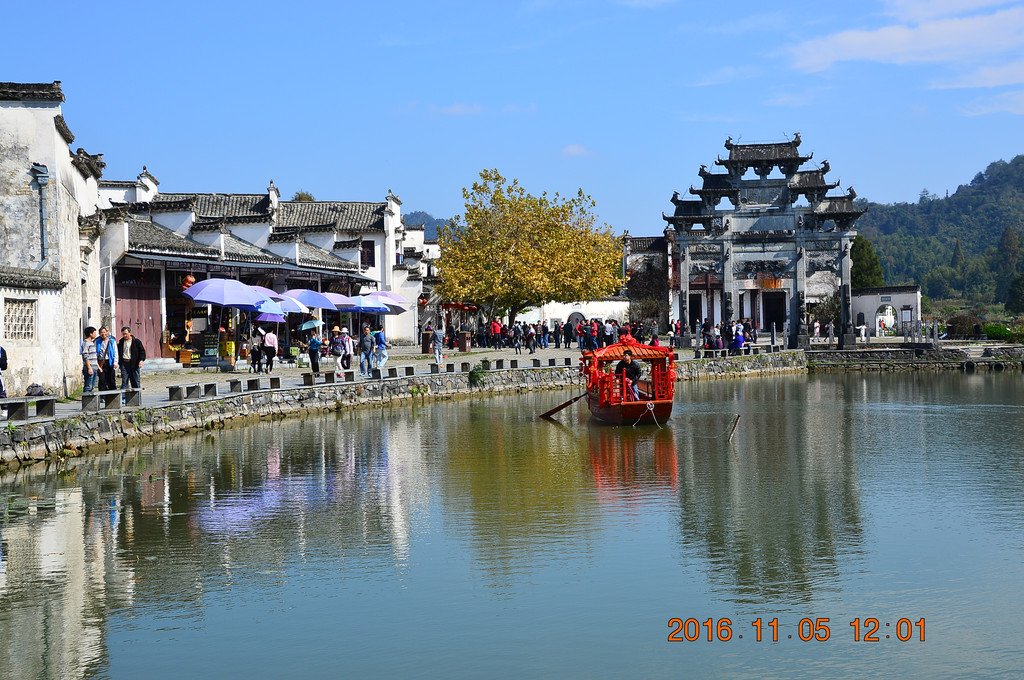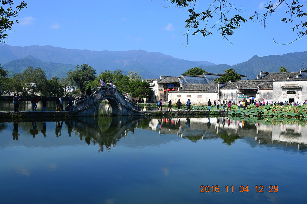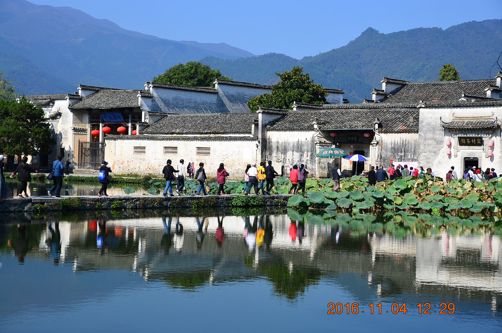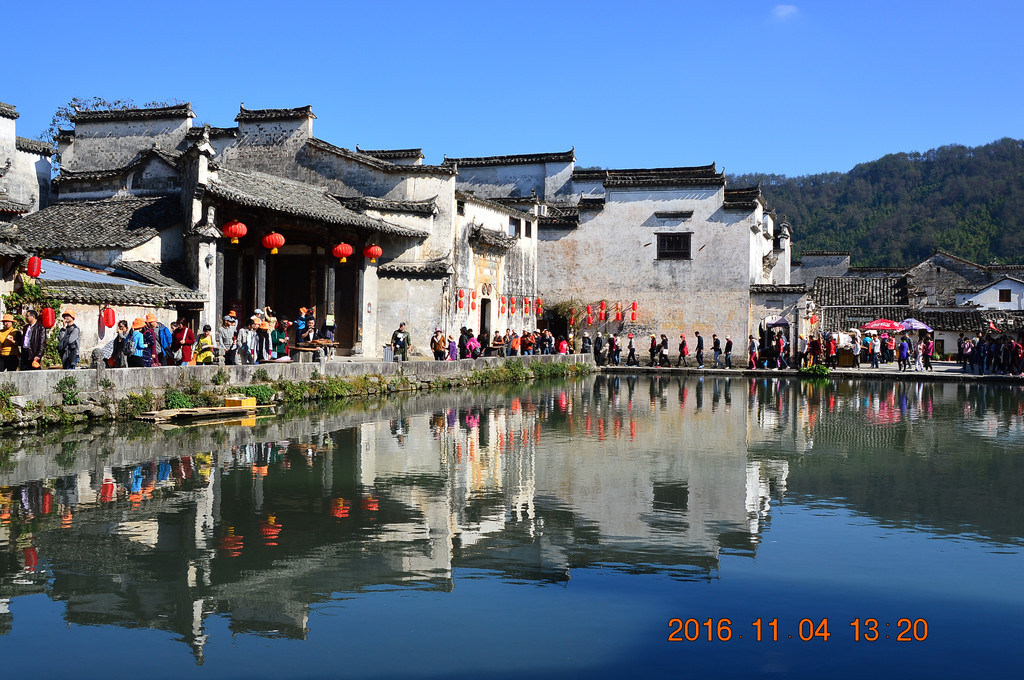 黟县宏村镇宏村,第一批获评的中国历史文化名村。宏村古建筑群,国务院2001年6月25日公布的第五批全国重点文物保护单位,古建筑类,时代明、清。