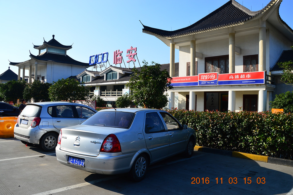 14点56分,抵杭徽高速临安服务区,累计行驶879公里。