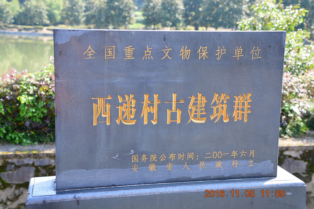 黟县宏村镇西递村,第一批获评的中国历史文化名村。西递村古建筑群,国务院2001年6月25日公布的第五批全国重点文物保护单位,古建筑类,时代明、清。门票104元。