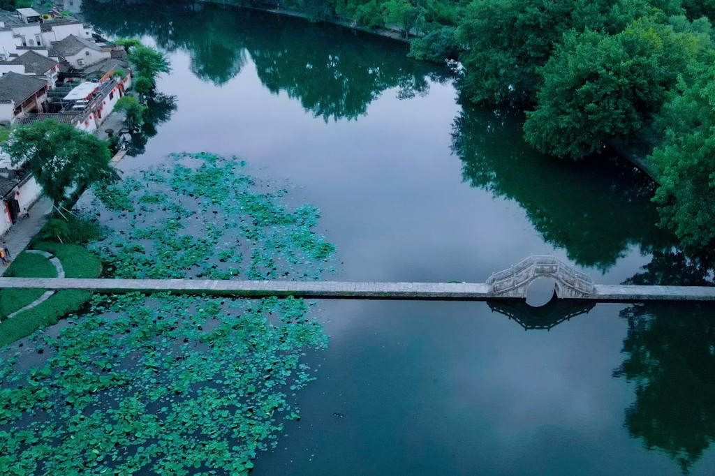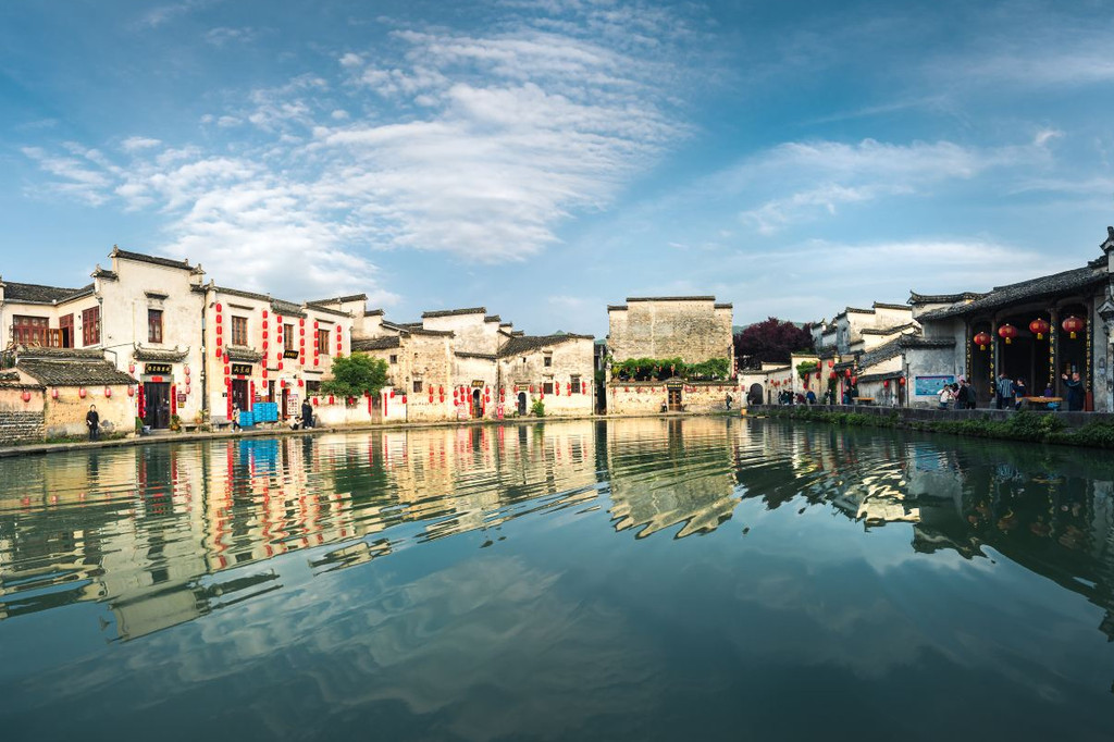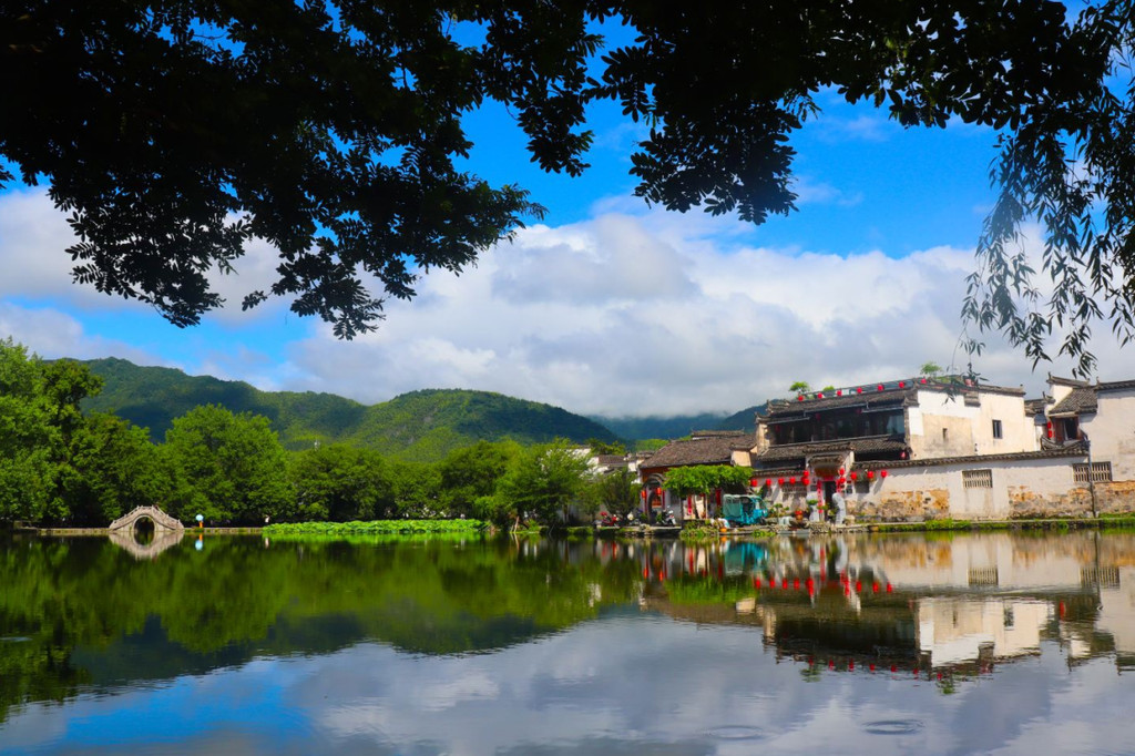 倘若提到“画里乡村”,坐标于黄山市黟县的宏村古村一定榜上有名,倘若欣赏徽派建筑的精髓,宏村古村也一定不可忽略。这座始建于南宋绍兴年间的古村,掩映在山水之间,粉墙黛瓦,极具水墨韵味;小桥流水,充满浪漫气息;月沼似眸,宛如天空之镜;长虹卧波,画桥眉眼盈盈;徜徉其间,寻梦江南,眼前水墨徽派,建筑典雅,平湖倒影,垂柳摇曳,莲花娇羞,群山挺立,山色空蒙,画里乡村,精致优雅,美轮美奂,犹如画卷,令人惊艳。
