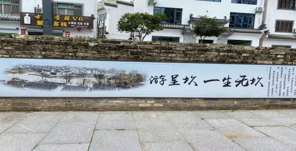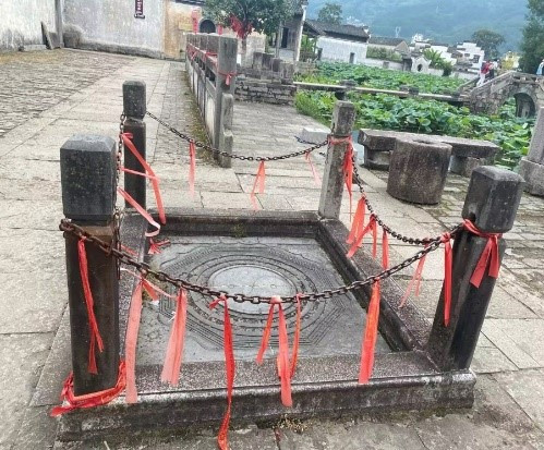 平安坎--平安坎是呈坎古镇最具特色的景点之一,也是呈坎古镇的标志性建筑。平安坎位于永兴湖畔,是一座高约2米、宽约1米、厚约0.5米的石坎,上面刻有三条鱼和云纹。平安坎是呈坎先祖为子孙谋福而立的,意为“过坎有鱼(余),平安得福”。平安坎两边有一对神兽,名为“Tun”,是村子的守护神,能吞噬邪气晦气,散发祥瑞之气。平安坎上还有一个小孔,传说能将手指伸进去的人就能得到祝福。