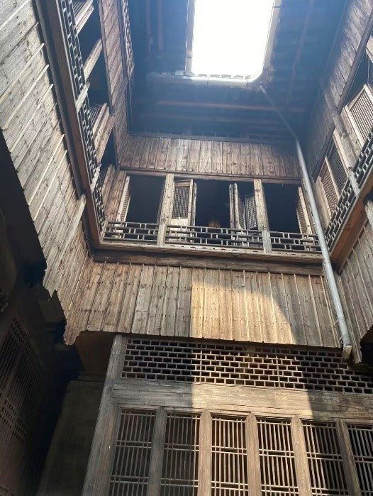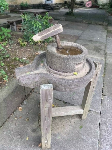 随着村里资深讲解员一路上生情并茂的讲解,我们身临其境地穿行在幽静的古巷中。一个个伸向水渠上方的石板,是窄巷中人们错身而行的落脚点,它包含了中华民族礼让的美德,因此它叫作“谦让石”;这里有一堵墙叫作“拐弯抹角”,在根基上的墙角被抹去了突兀的棱角变成平面,而上方两米高处才恢复原有的棱角,这方便路人行走,让行空间又不让地基,完美展现原则和灵活性的辩证关系,现代的贬义词在这里凸显了我们民族的美德;扬州八怪后起之秀罗聘的祖宅燕翼堂--它被誉为是“世界古代消防博物馆”,二楼及三楼的地板中铺了一层细沙,外叠一层石砖,如果家中引发火灾,木板被烧掉,细沙落下进行灭火,随后小方石砖也会落下,进一步扑火。