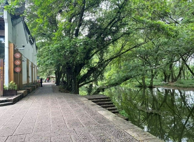 永兴湖--永兴湖原名水口,是呈坎村民从东汉到南宋时期挖掘出来的一个人工湖泊。永兴湖的两岸是呈坎古镇的主要民居区,白墙黑瓦的徽派建筑倒映在湖水中,形成一幅美丽的水墨画。人在湖边走如同画中游!