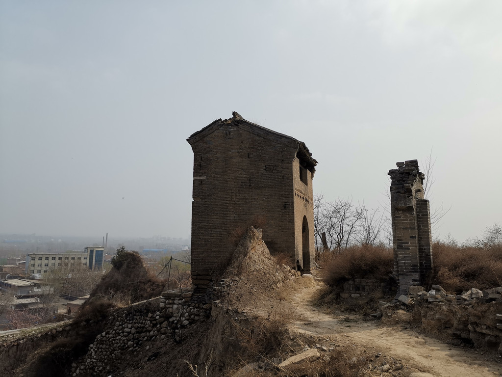 离开这里又来到了堤村最高处,这里有一座孤零零的“门楼”,从地理位置上来看,这里应该是古代的堤村“城门”,有瞭望和防守的作用。目前这里也只有这座“城门楼”还摇摇欲坠地坚守在这边高地上了,见证着堤村的变迁。