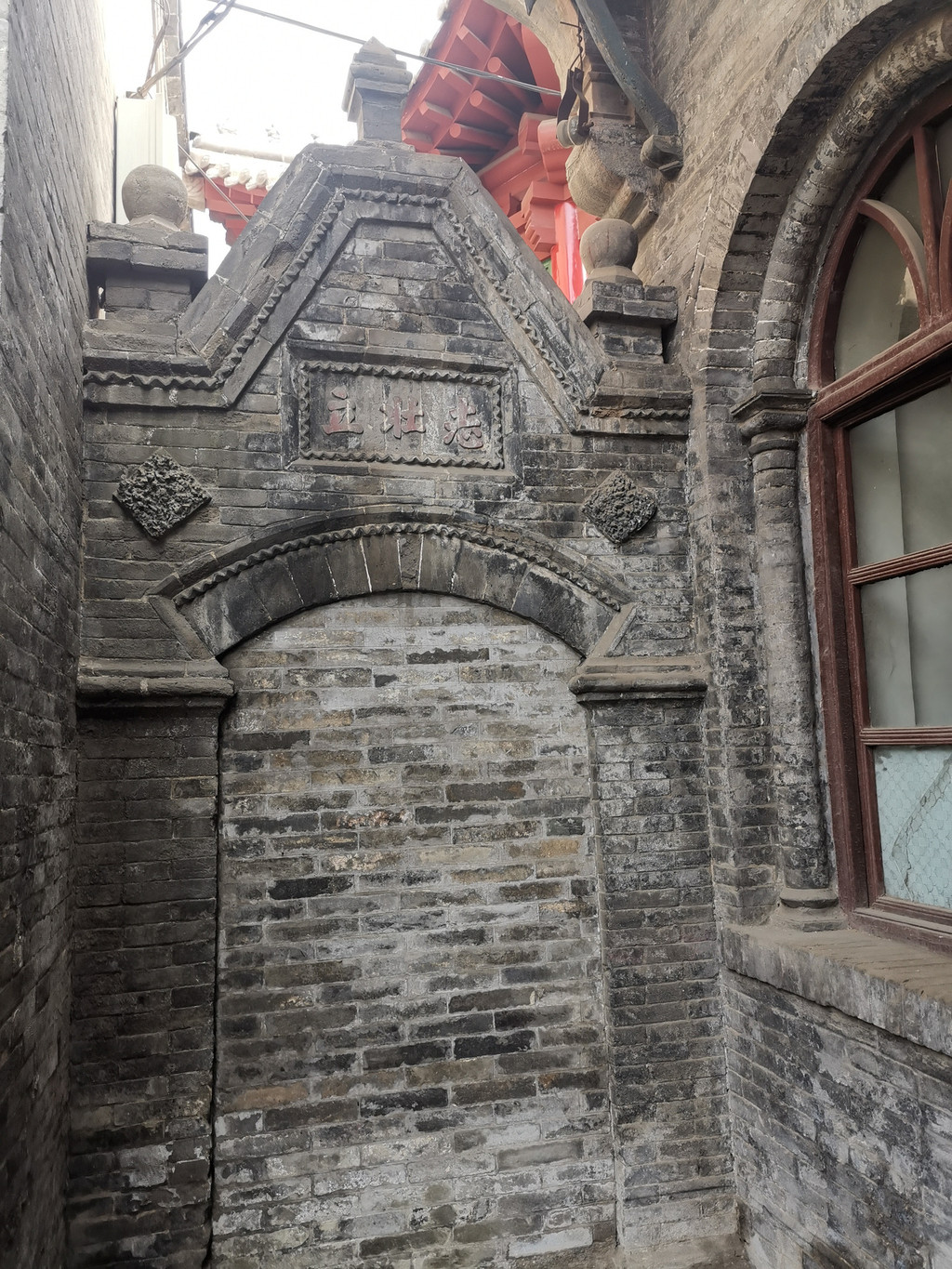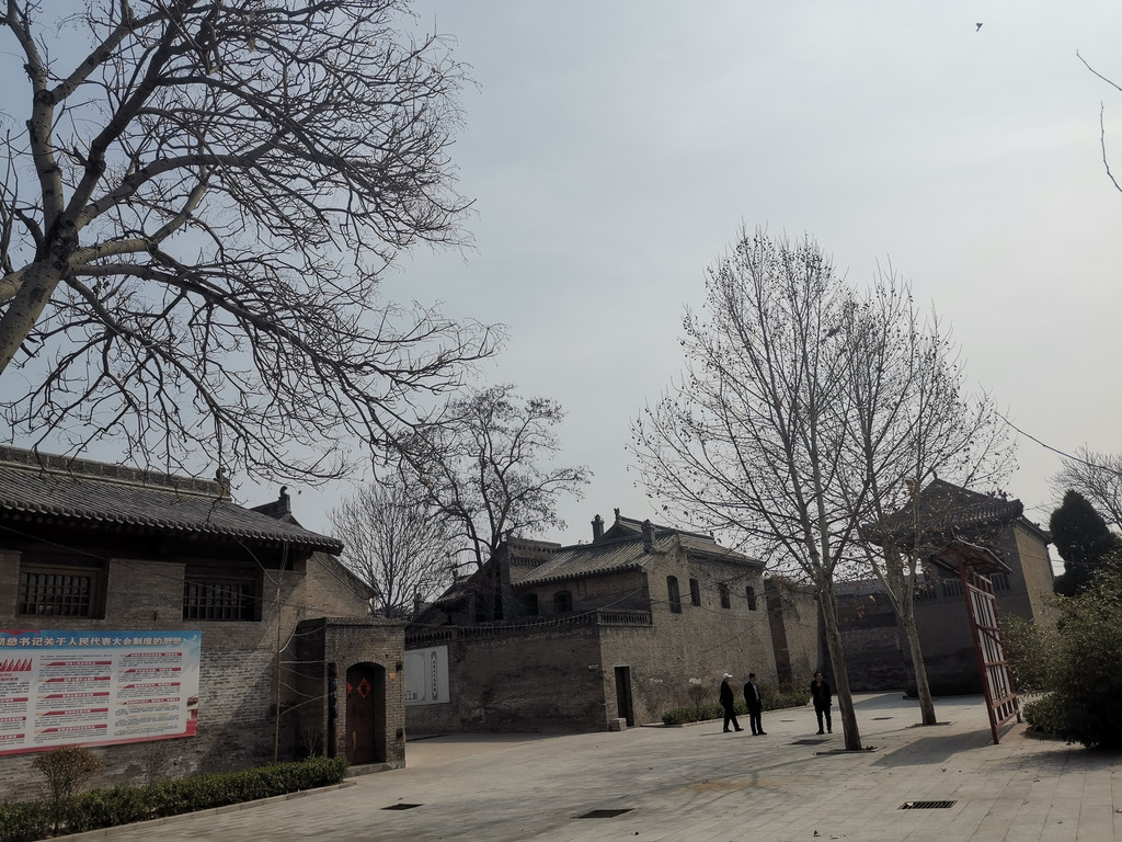 解放后政府曾在这里做过办公场所,整体保护的还比较好,即便是后来修建的墙壁,尽管有“树雄心、立壮志、公社万岁”的砖雕,风格上依然与原貌保持一致。