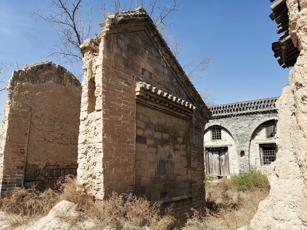 老建筑以窑洞为主,从院墙与规模上看,以前都算得上是大户人家,估计是财主,如今的残垣断壁给人的感觉是凄凉,老建筑年久失修,尽管前人省吃俭用置办了产业,而今后人多移居城市,也不愿花钱投入进行整修,只好任其破败。