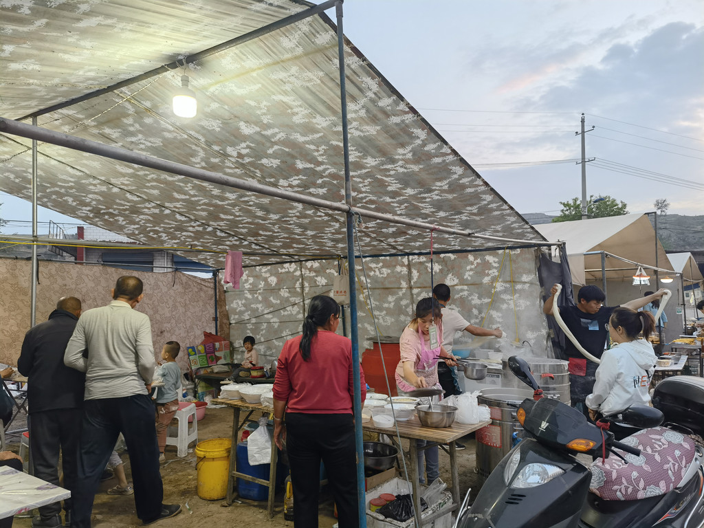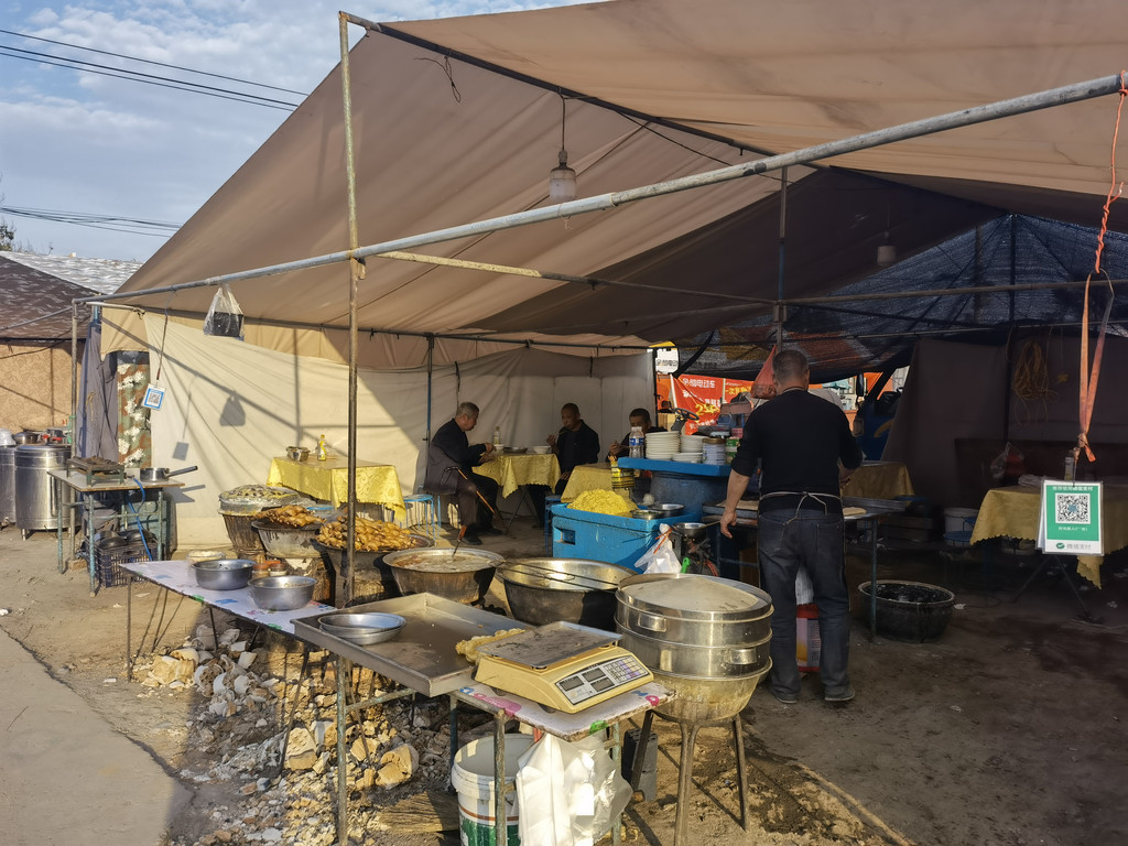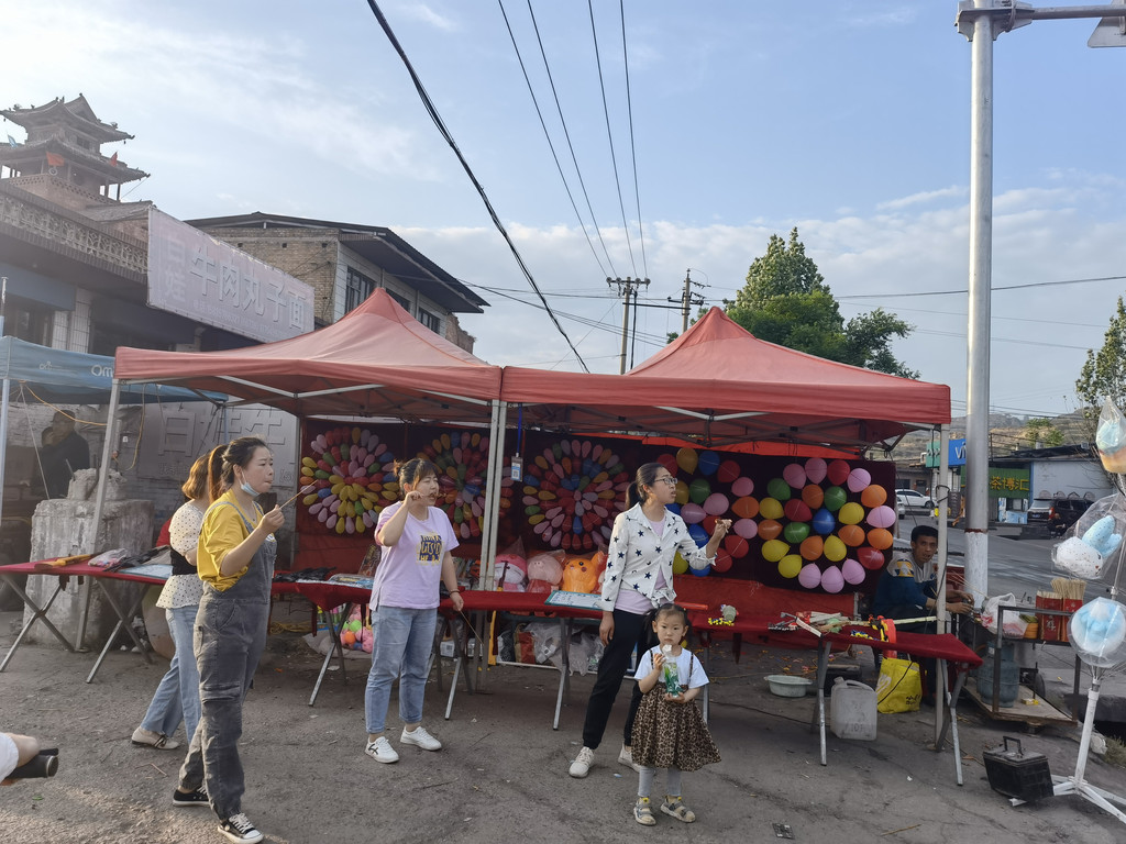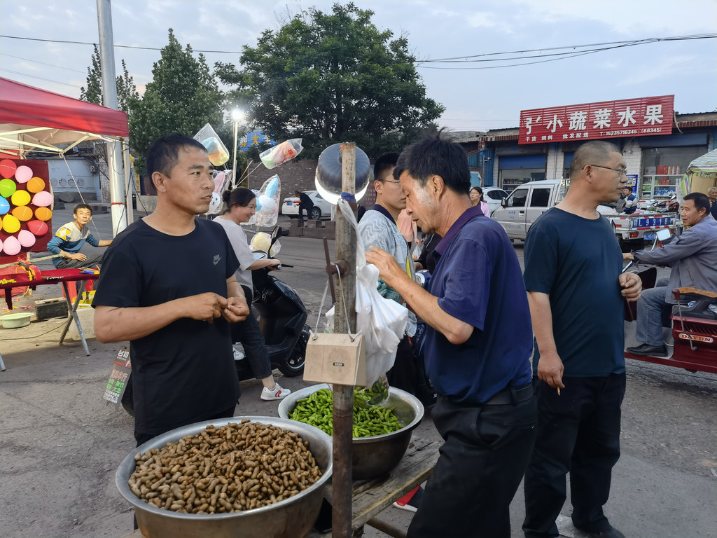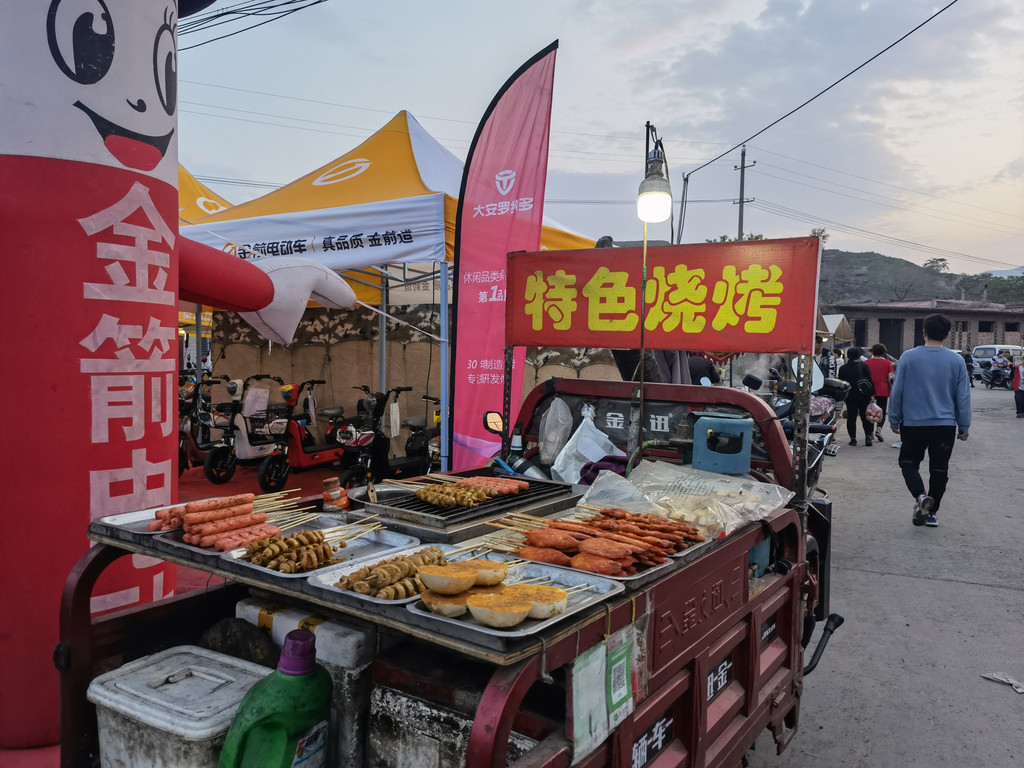 以前农村的集会人头攒动,做生意的、闲逛、买东西的人很多,现在赶会的人少多了,大多是一些年龄大的人带着孙辈来转转,今天的集会人还算比较多,可能与晚上唱戏有关,会上有家卖吃的,晚餐我们就在这里吃小吃。
