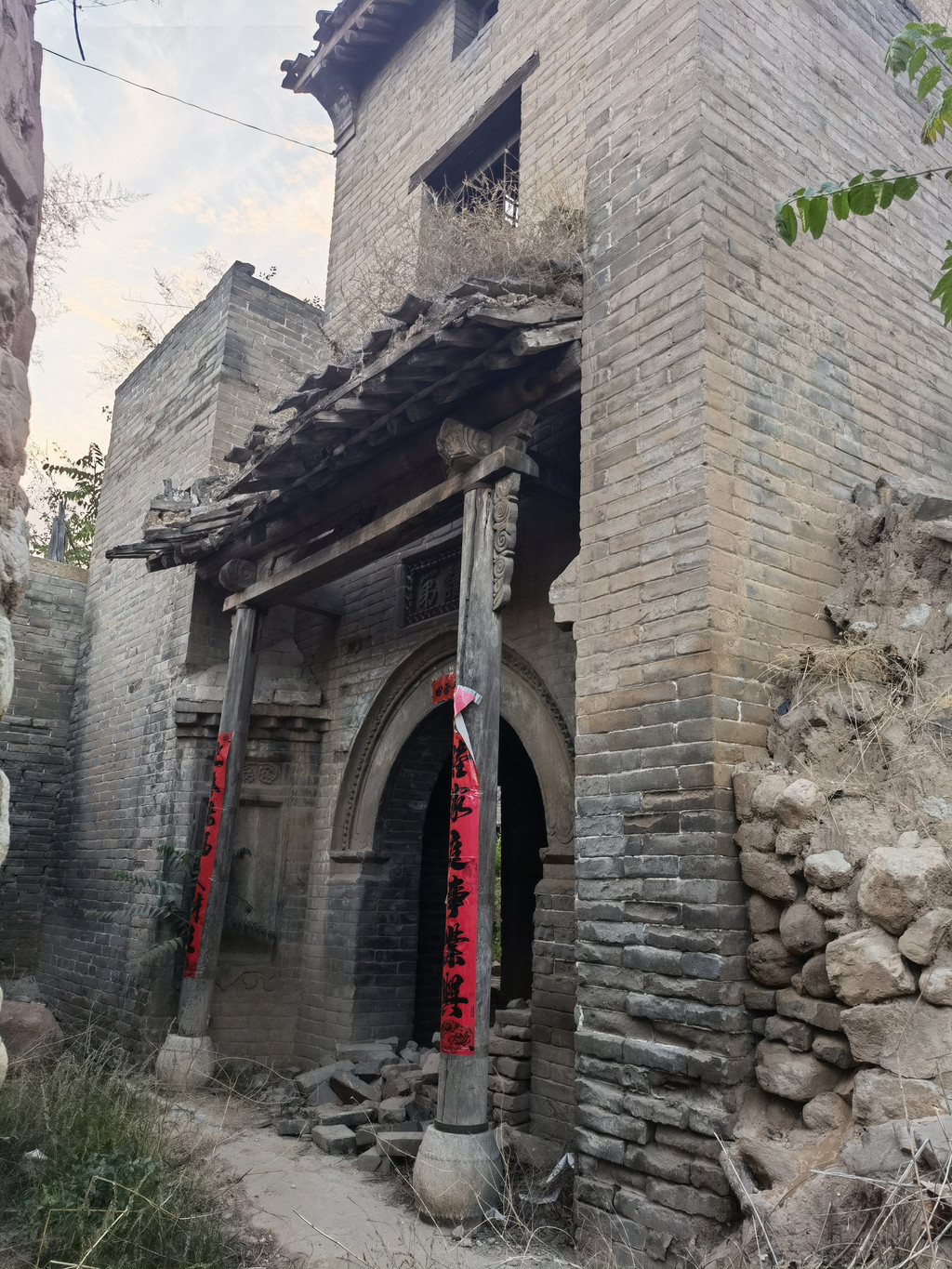 我们到村里转了转,看了以前村里庙的遗址,还看了以前留下的正在损坏的老民居建筑。从前的人有了钱很多都是盖房子买田地,总期望子孙后代能永远过上衣食无忧的好日子,也有一些人挣了钱依然省吃俭用,为子孙置办家产,从古到今,兴衰成败循环轮回,没有世代相传的富豪,没有坐享其成常在的幸福,不过今天这种现象依然存在,为孩子买车、买房自己省吃俭用吃苦耐劳的人依然很多,不知道是可悲还是无奈。