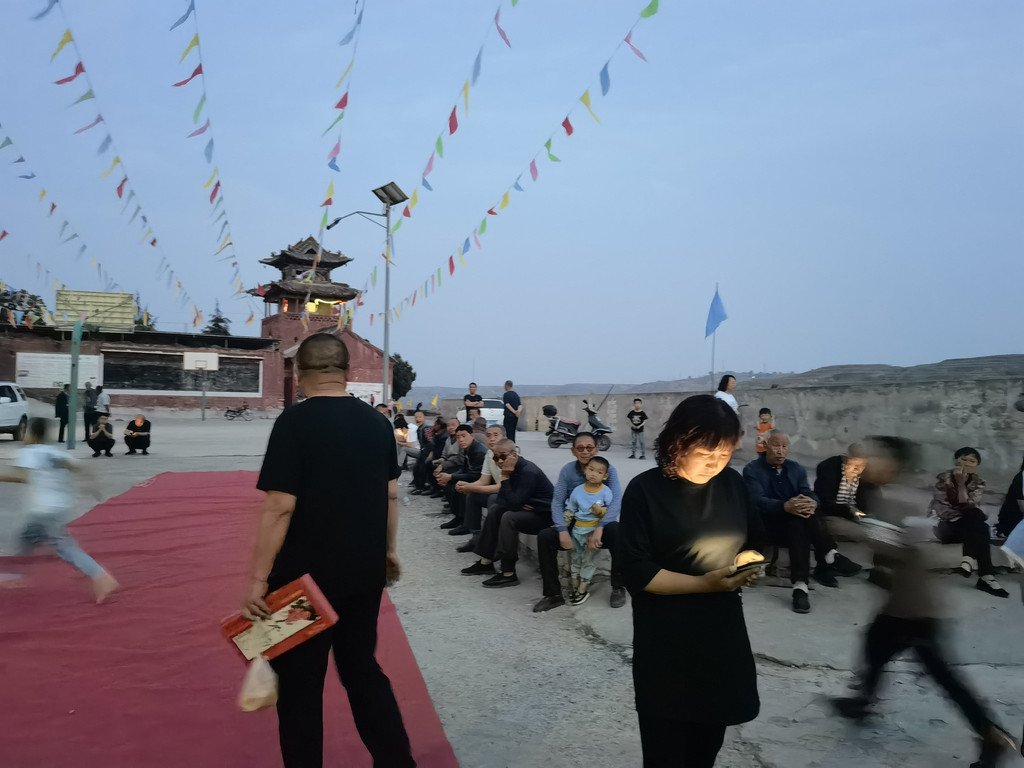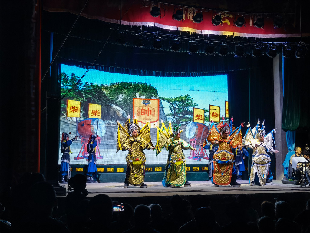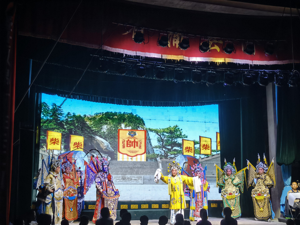 晚上演出蒲剧《大义夫人》,演的是岳飞三儿子岳霖的故事,我们饶有兴致地看了一会儿。