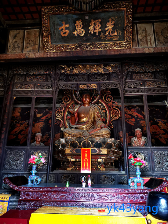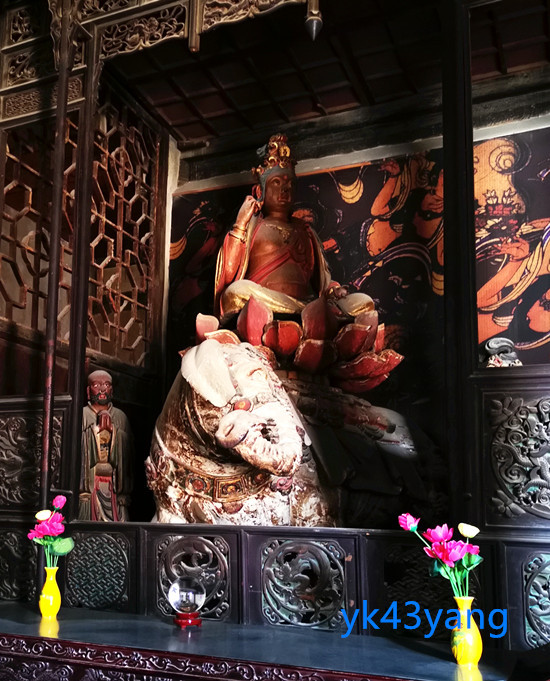 大雄宝殿背后有倒坐的南海观音,乃清代雕塑。
