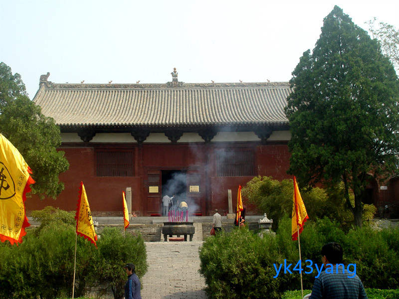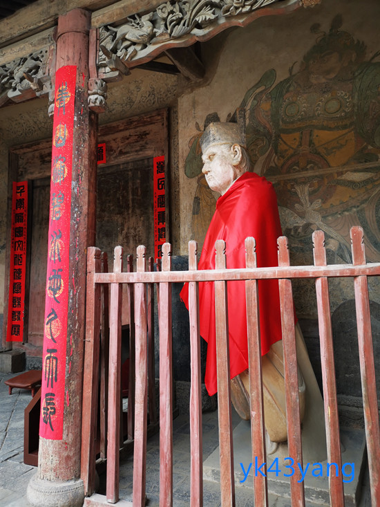 来到下寺,我独自一人快步向中轴线的天王殿走去。拍了几张照片正要进入,却被妻子在后面喊住。原来有一伙旅游团正由导游带领前往西轴线上的水神庙。于是我们大家一路跟随人家的导游进入了水神庙。