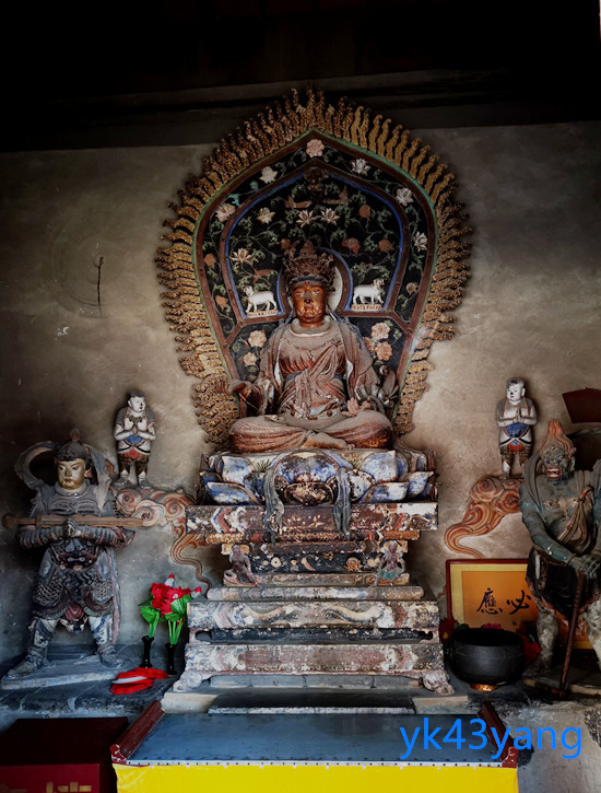 两侧为泥塑的观音菩萨和大势至菩萨。