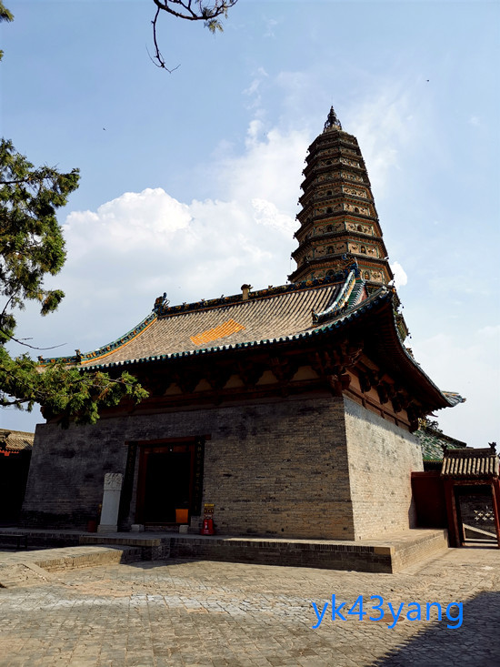 山门之后,就是飞虹塔的塔院。一般的寺庙都是前寺后塔,唯独广胜上寺是前塔后寺。这可真是一件奇怪的事。