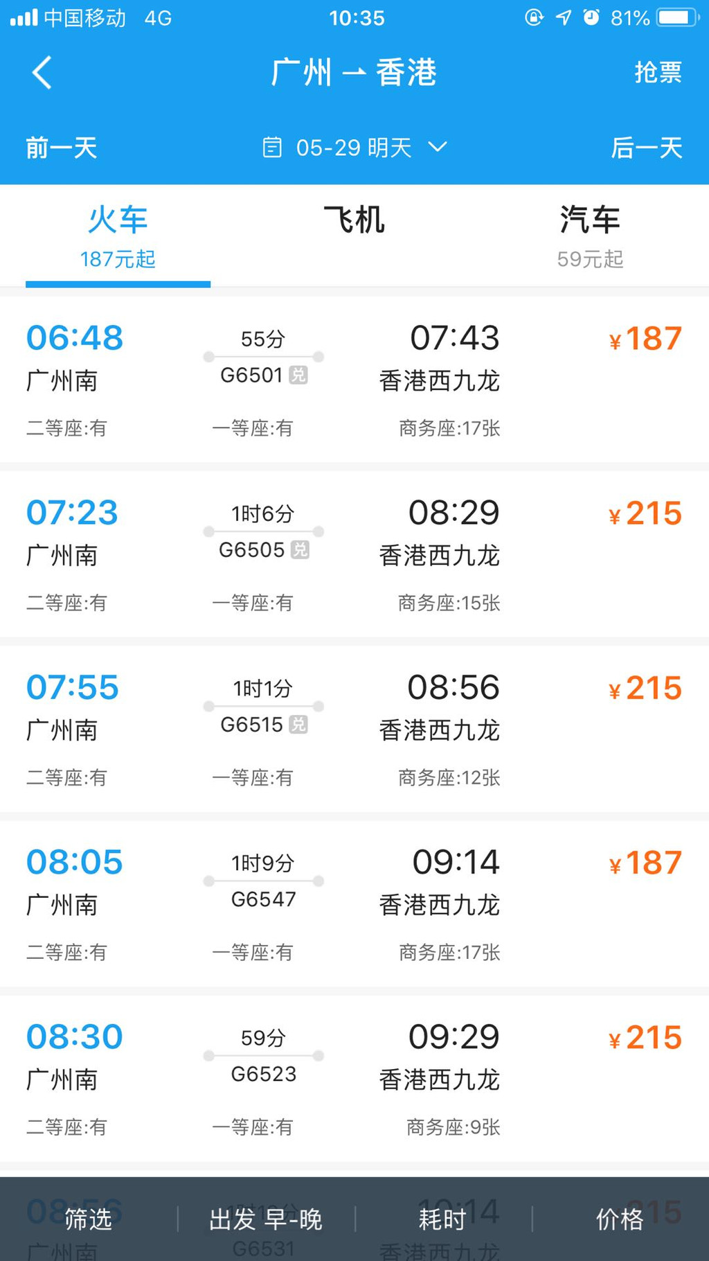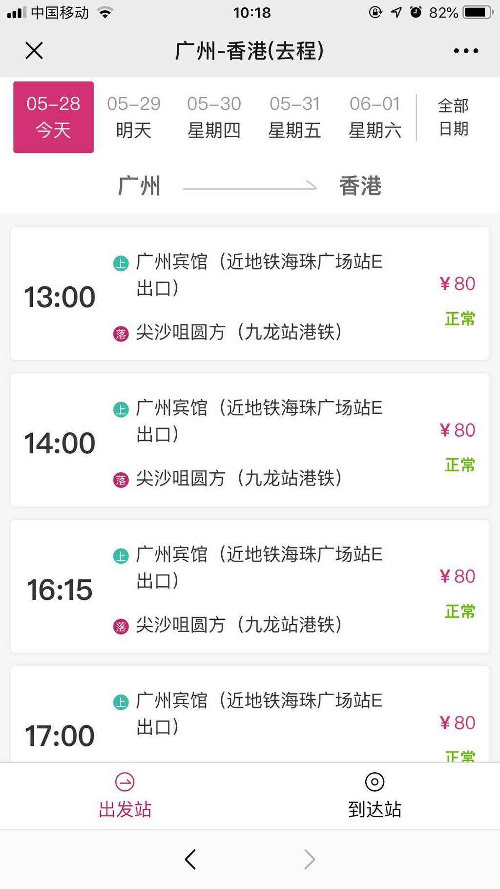 2、交通方式:其实香港已经去过很多次,交通方式也试过很多种,船&大巴&新解锁的高铁;坐船:我是佛山人,坐船可以有两处可以选,高明港或者顺德港,顺德港班次更多离广州更近,推荐选择顺德港。好处:上船前就出境,下船后再办理入境,比较少人轻松过关,下船点就在海港城附近。顺德港-香港约2小时。缺点:相对大巴票价高,是大巴两倍多,单程普通票170-230元左右,时间段不同价格不同。大巴:多数人出行方式。优点:大巴上车点下车点多班次也多,票价相对低,我在广州宾馆上车九龙站港铁下车,单程车票80元。缺点:到达深圳需要下车过关,过关后找到同一旅行社对应上车点,继续出发到达香港目的地,广州-香港时间约3小时。高铁:这个是2018年10月刚开始运行的,我也来尝尝新。优点:直接在广州南站上车,到了香港九龙港铁站再办理出入境。广州-香港时间约1小时。缺点:票价高,单程车票187-215元左右,时间段不同价格不同。