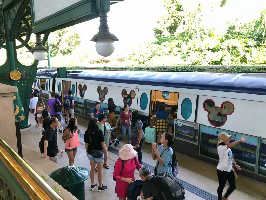 10点左右到达迪士尼,下了站,有点像到了哈利波特电影里的火车站,色彩缤纷有点梦幻。