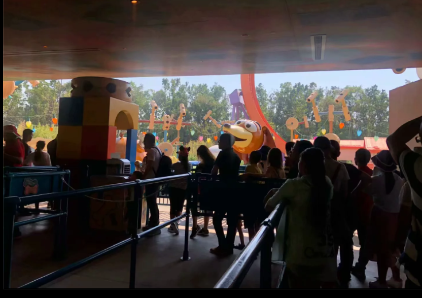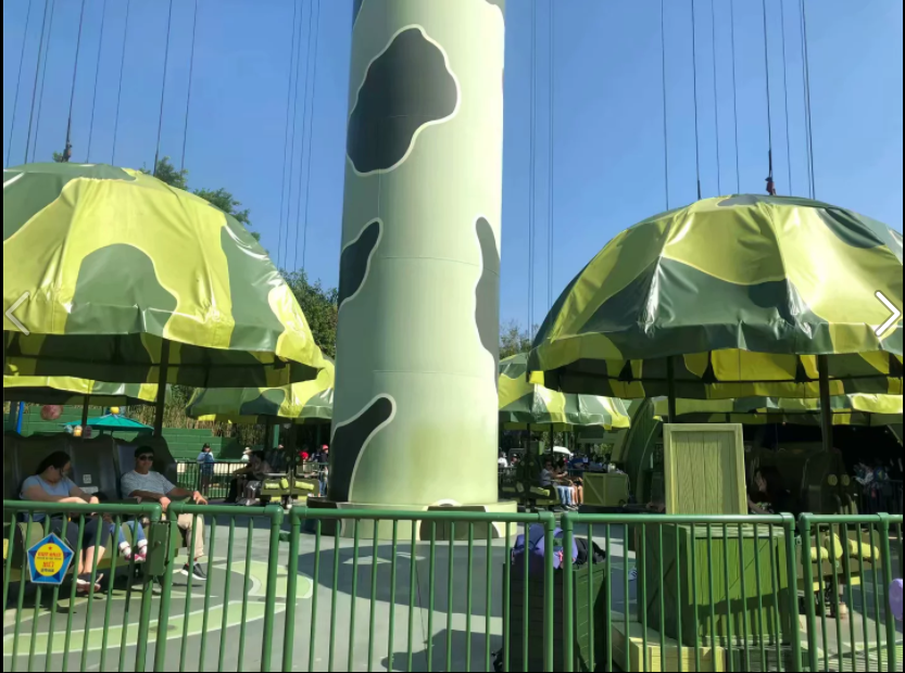第八站翻斗奇兵俱乐部,我老公畏高,直接忽略了玩具兵团跳降伞,我们就玩了转转弹弓狗过山车,这个比较适合小朋友玩。