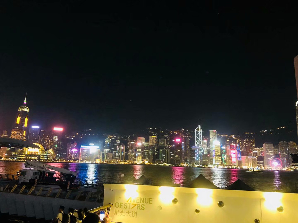 坐地铁回到市区,我们就在酒店楼下买了一点鱼蛋吃,非常好吃呢,然后就到维多利亚港吹吹风,好享受这种感觉。其实可以往码头方向去,那边有钟楼,那边景观更好。只是我们太累了懒得走了。