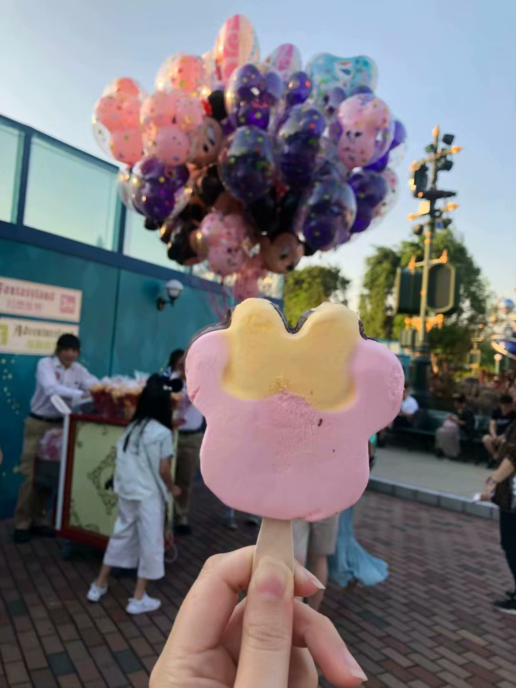玩累了,去小吃屋找吃的,买了一个雪条(小吃券兑换,单买好像40多港币),是米妮的,萌萌哒!舍不得吃了~