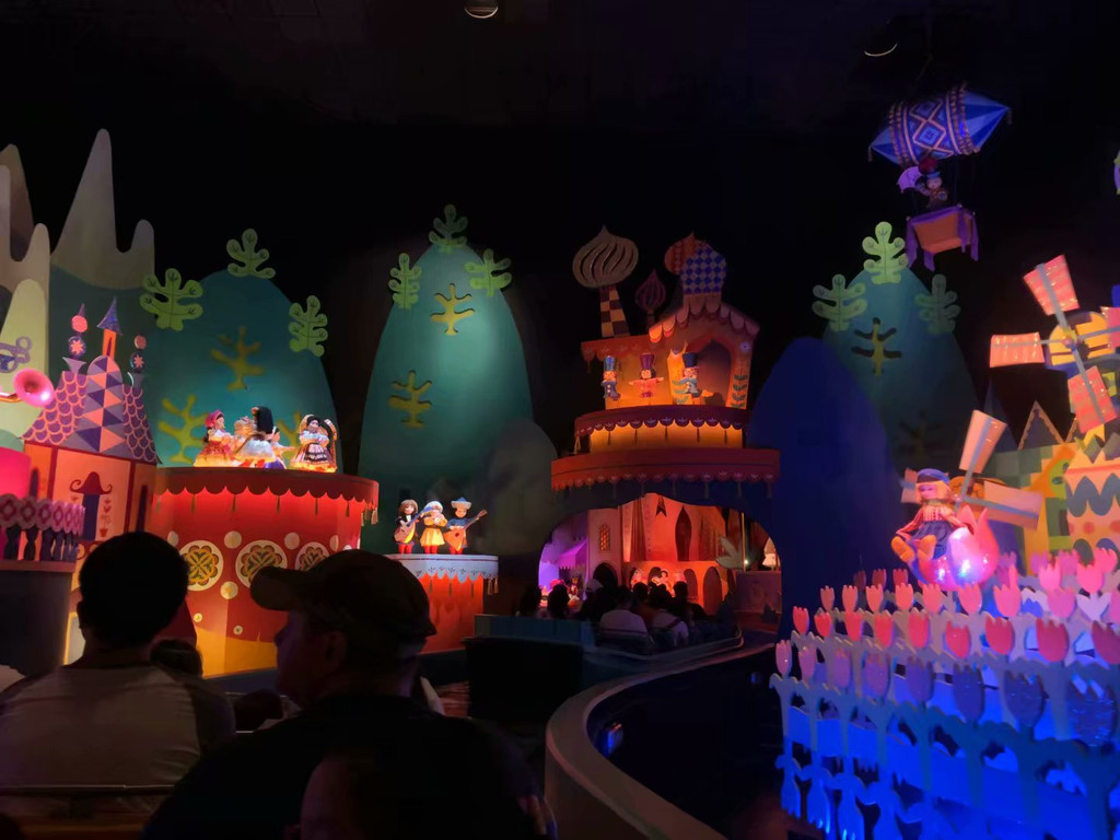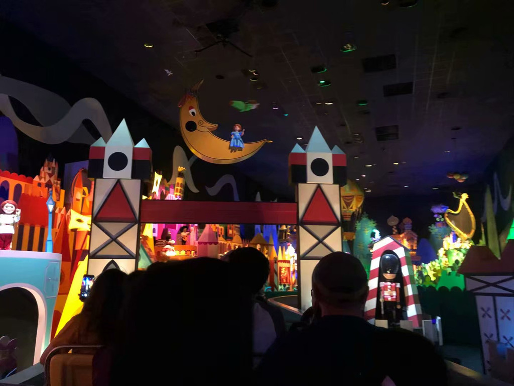 第四站小小世界,外形很像一座积木城堡,这个小小世界是需要坐船游览的(建议做第一排没有人遮挡),里面的公仔和背景还会动,色彩缤纷,提现了不同国家的人民风貌及特色。