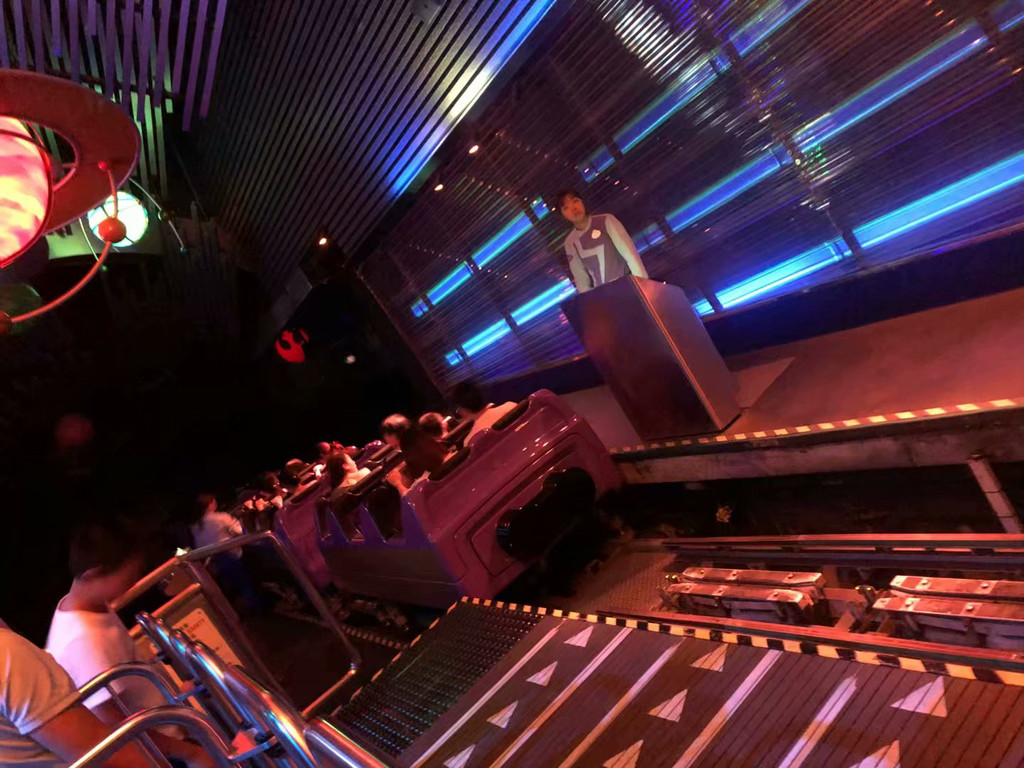 第三站星际极速穿梭(超级推荐),这个项目一定要玩哦,相当于过山车,但是就在塑造的银河空间里,屋顶有星星银河,但是你已经无暇顾及,因为太刺激了。(在迪士尼很多项目都是先拿排队票,几点到几点场次的,只要在这个时间段回来就能优先进场,不用在那里排队,可以趁空闲时间去玩其他项目。)