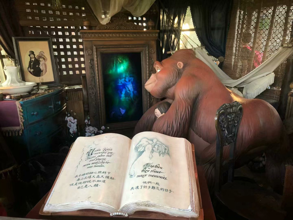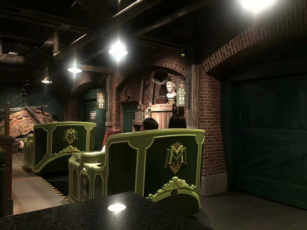 第九站迷离庄院,这个是坐着电磁厢车根据剧情转换不同房间和场景,非常好玩,刚好隔壁有一对外国情侣,男的还跟我老公互动,两个大男人在装害怕哇哇叫,笑死了。