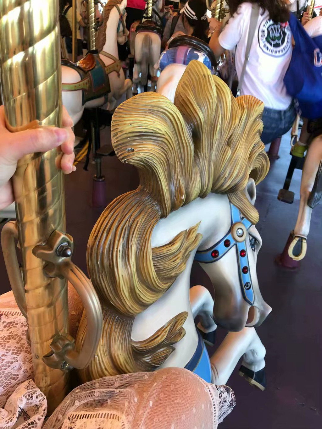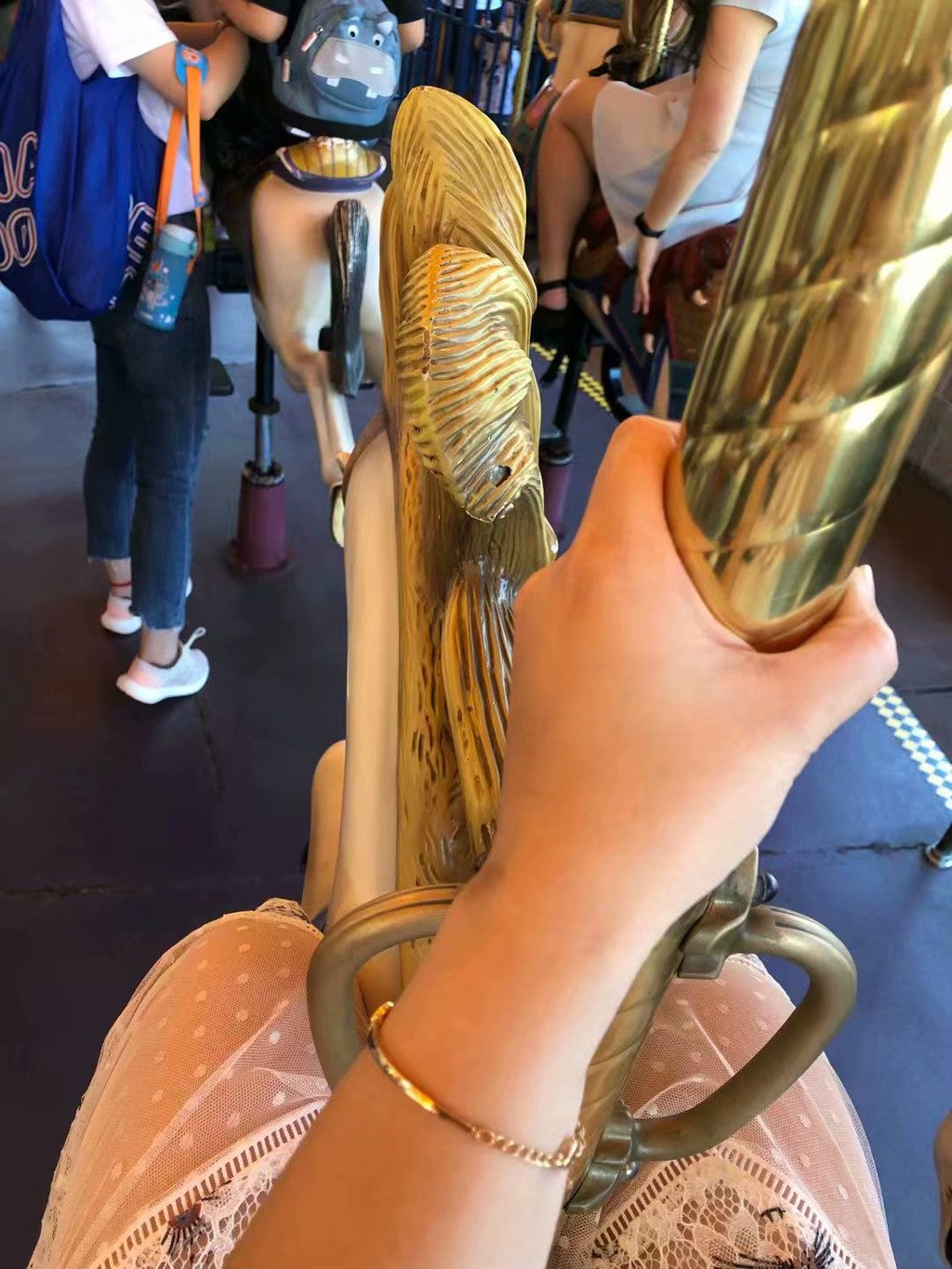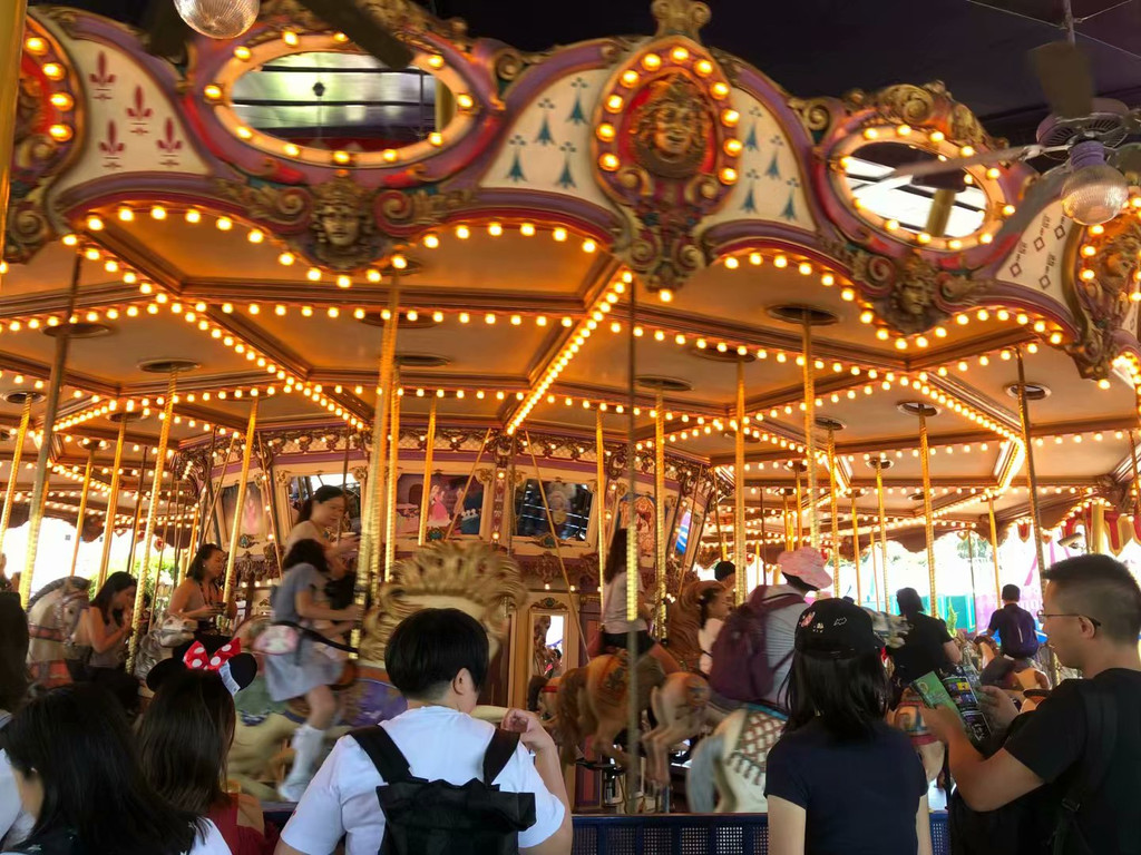 第一站灰姑娘旋转木马,这个是我心心念念要玩的,这个项目也是很多人排队的,大概排了20-30分钟才进场。好开心~而且不是小孩子玩,很多大人都玩,这里没有分小孩不小孩的,想玩就玩,不用顾忌怕别人说。