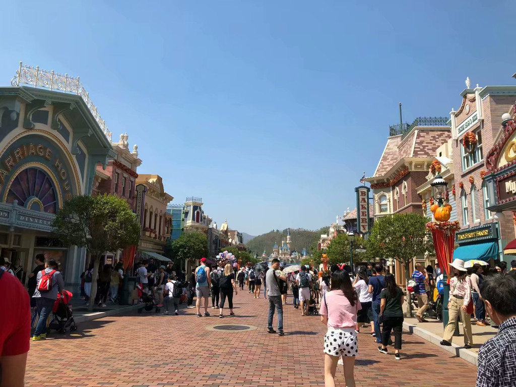 啦啦啦~终于入园了,迎面看见的就是美国小镇大街(礼品商店)和睡公主城堡。