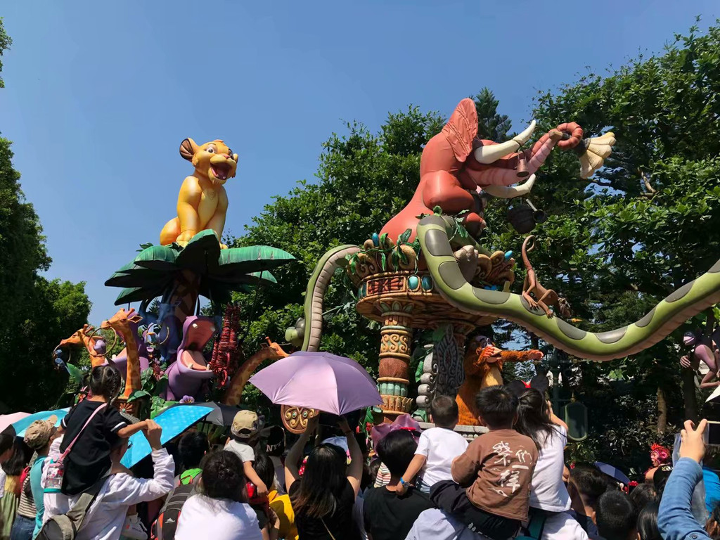 第五站花车巡游,这个肯定不能错过啦,在迪士尼很多角色都能看见。要提前去霸位哦,第一排最佳。