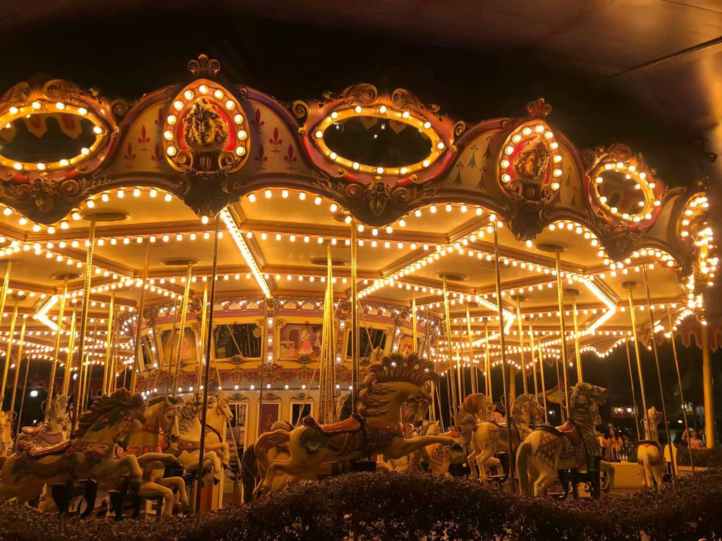 晚上全部设施都布满了灯光,更增加了不少童话色彩,我又跑去玩了一次旋转木马(太爱这个项目了)