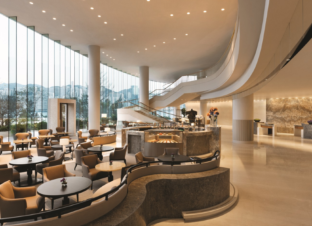 走进大堂,你就可以点一杯亚洲风味鸡尾酒、自家制汽水、香港特色饮料如鸳鸯、丝袜奶茶等港式地道风味,还有由酒店行政糕饼厨 Julien Gourmelon 所设计的蛋糕及精美糕点,再看看窗外的怡人海景和户外风光,值了。