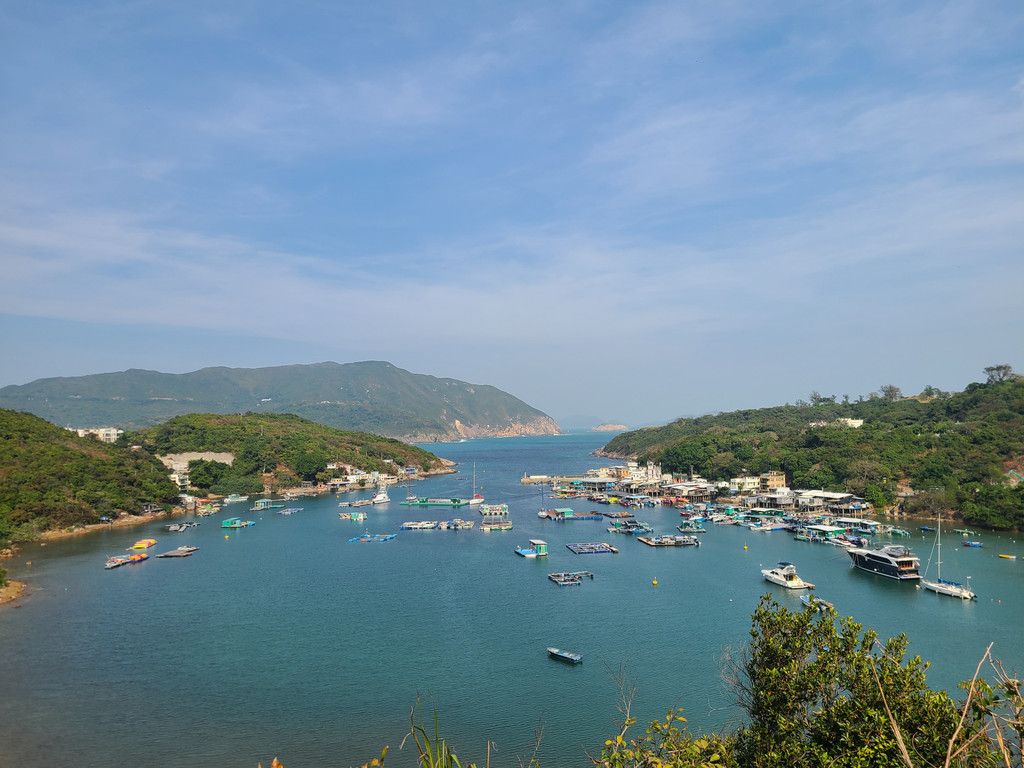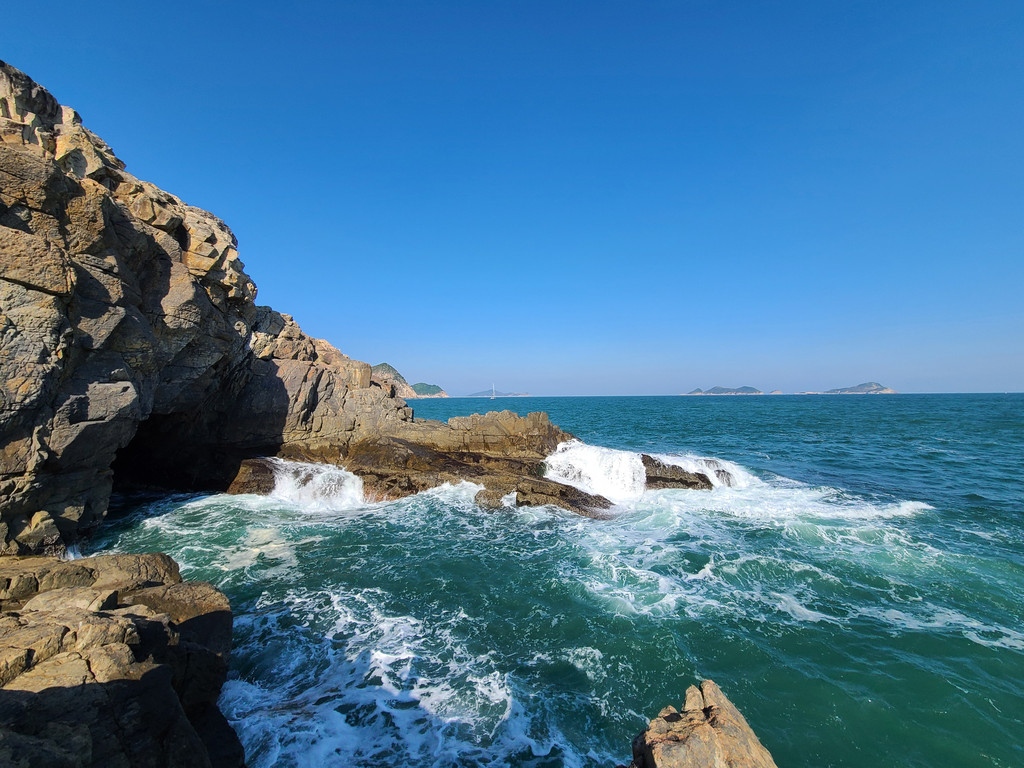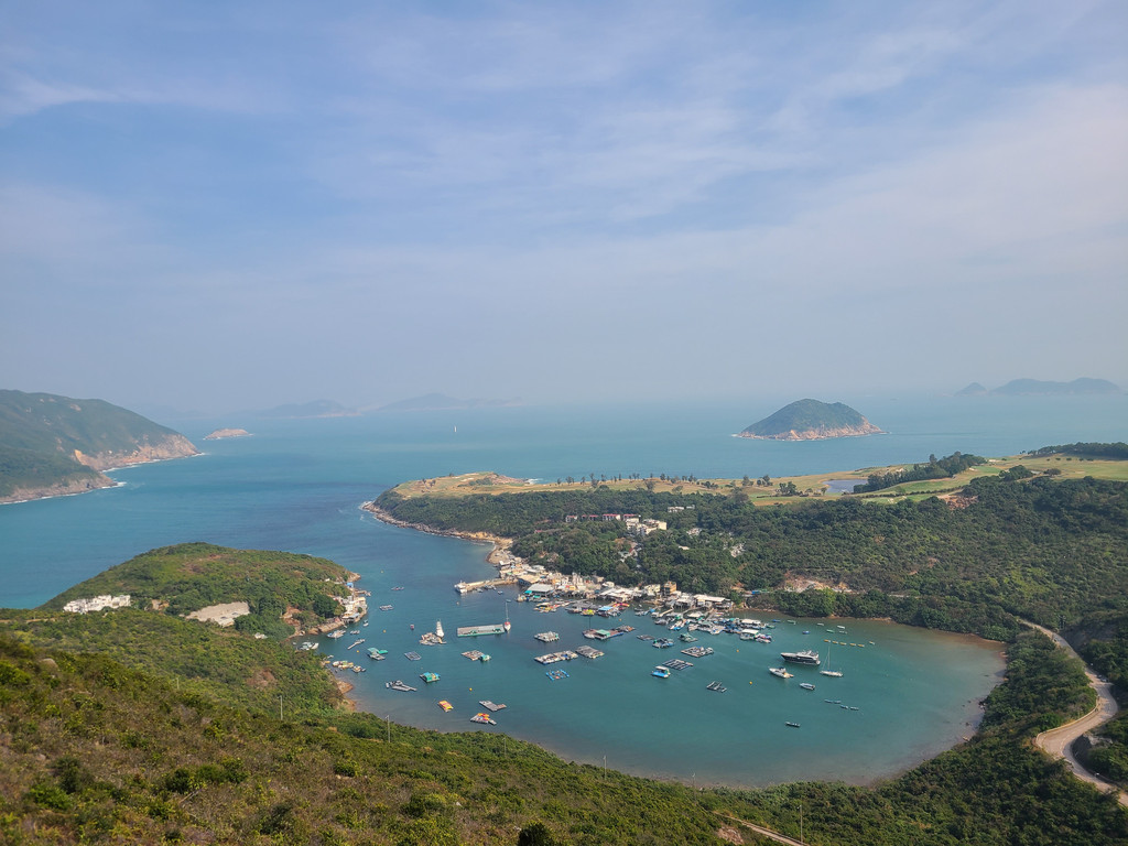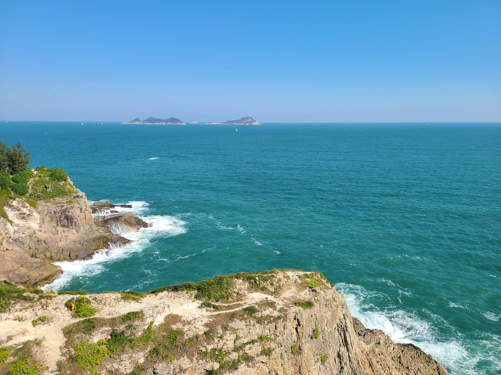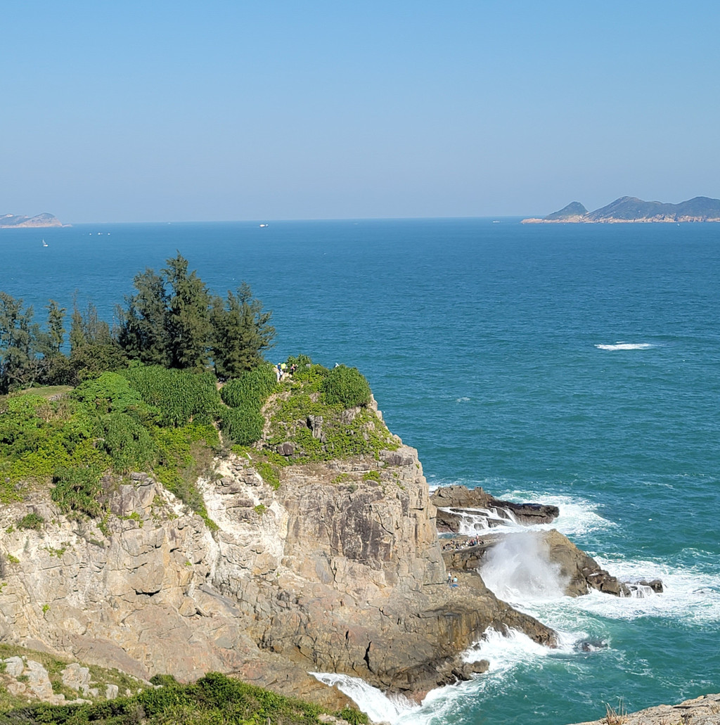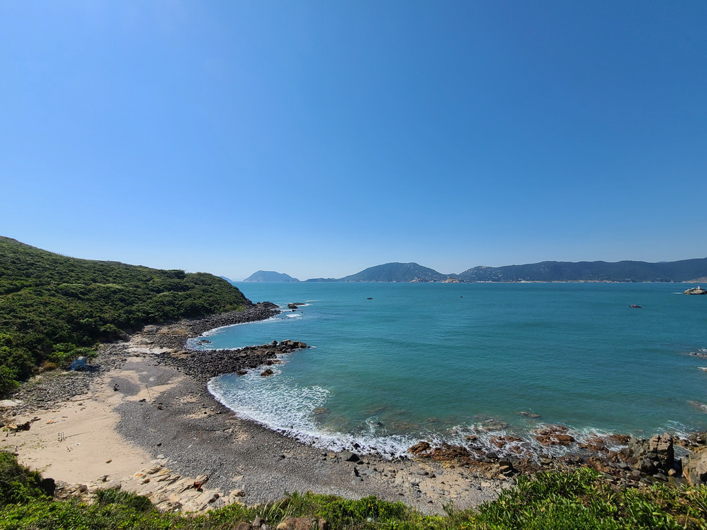 走完只是上坡的龙跃径,到达清风坳,就会有一段近千级的石阶,需要不停攀登,如果埋头赶路,可能是乏味的,但是这段路,不时回看就可以从树木之间俯瞰到小西湾和将军澳之间的海景,途中还在一个观景平台,可以借助景色减低疲劳,登尽石阶后,被山环抱于海面的歌连臣角,算是一道开胃菜。