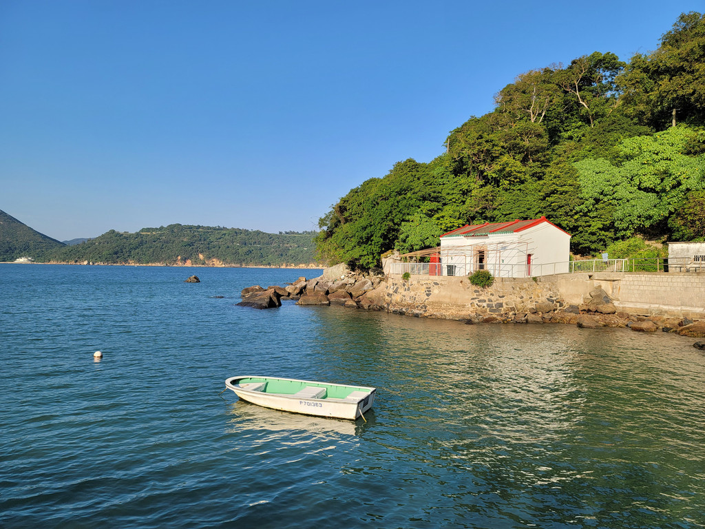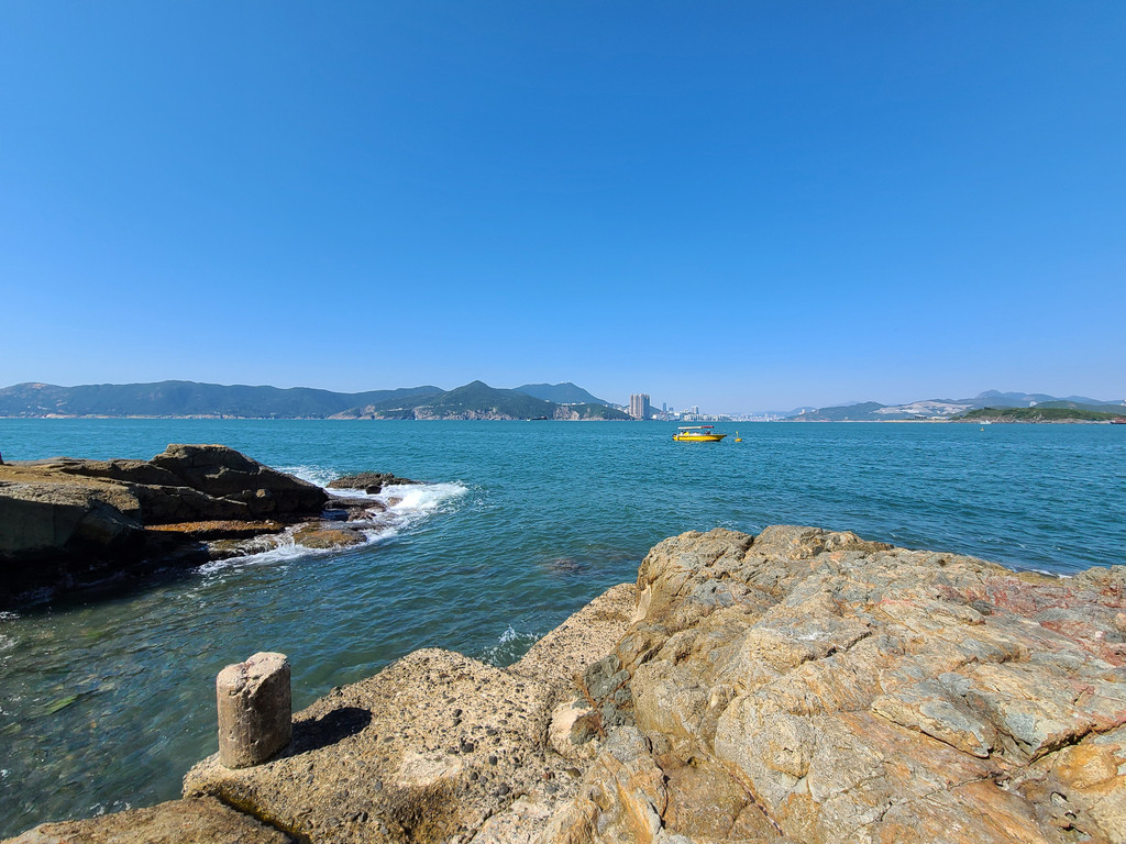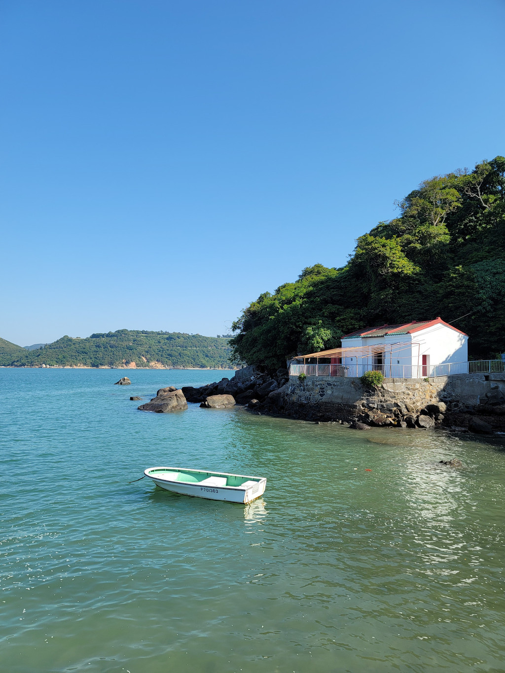 回程路上看见有人从另一条路下来,似乎比我们来时的路短,我们决定沿石而上,难度比我们之前走的路更陡峭,几乎是垂直的,不过在合力之下,我们终于还是登上了山顶。再之后的道路就恢复水泥路面了,对于已经面对过困难路况挑战的我们,几乎如履平地。在上船前,还有时间可以再在码头附近的士多享用个下午茶。这里的景致,特别是海岸悬崖边的景致,加上湛蓝的天空,真的会让自己忘记了身处香港,难怪周末这么多人来这座外岛放松自己。