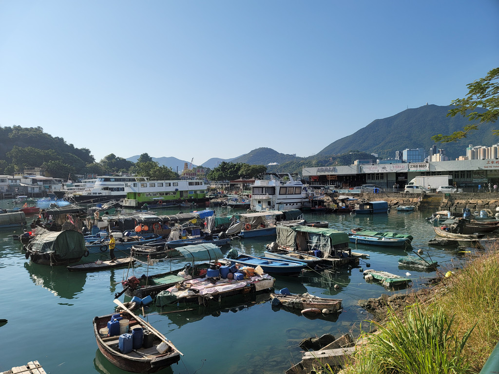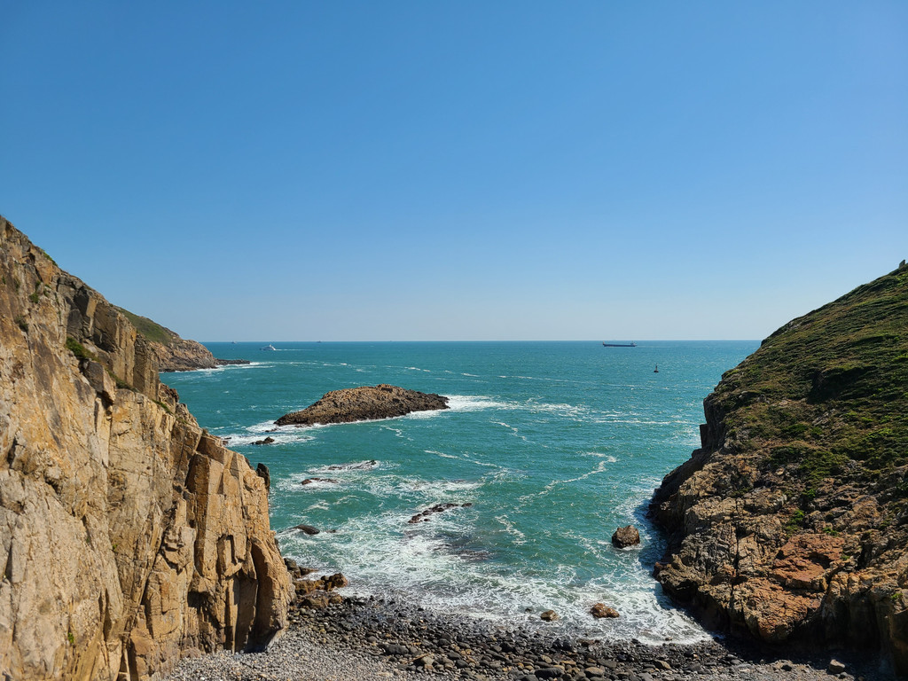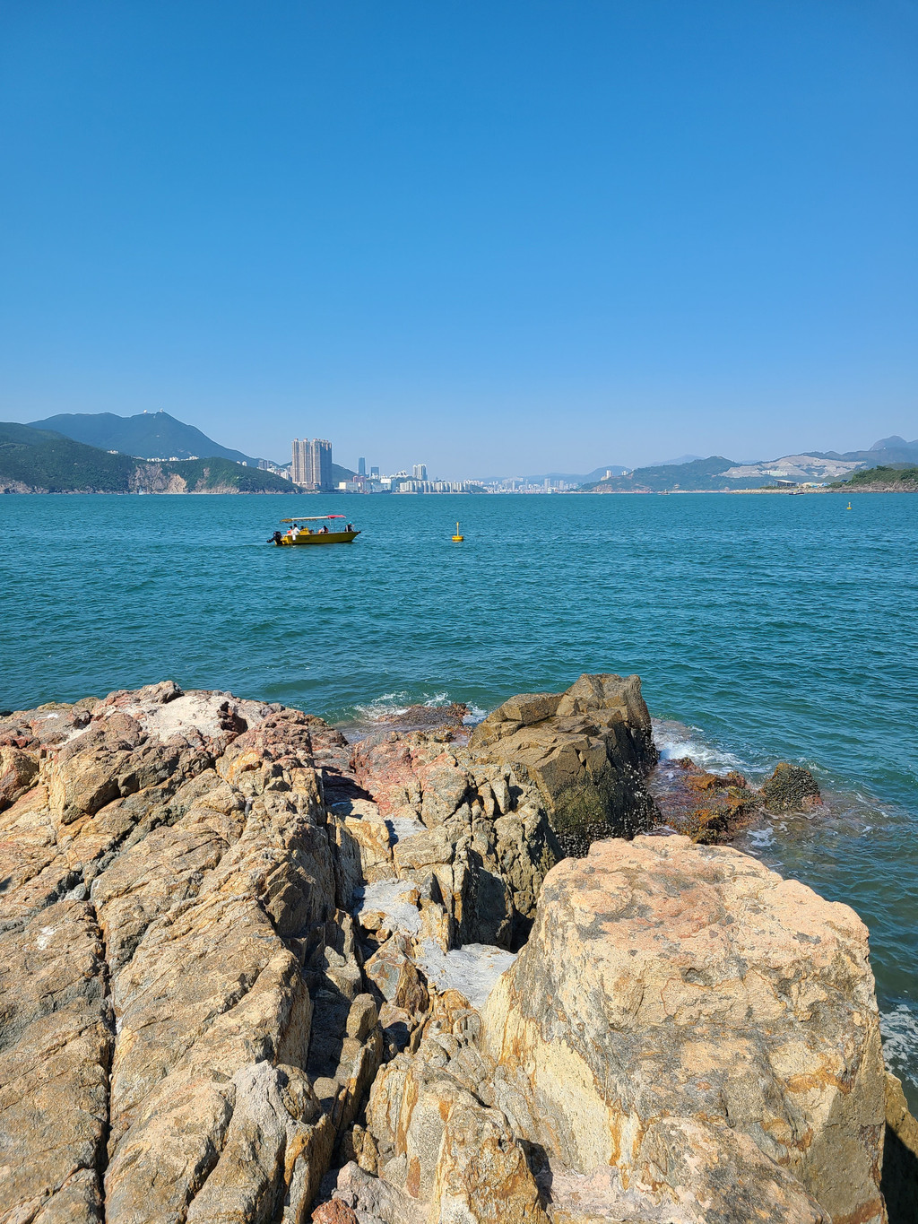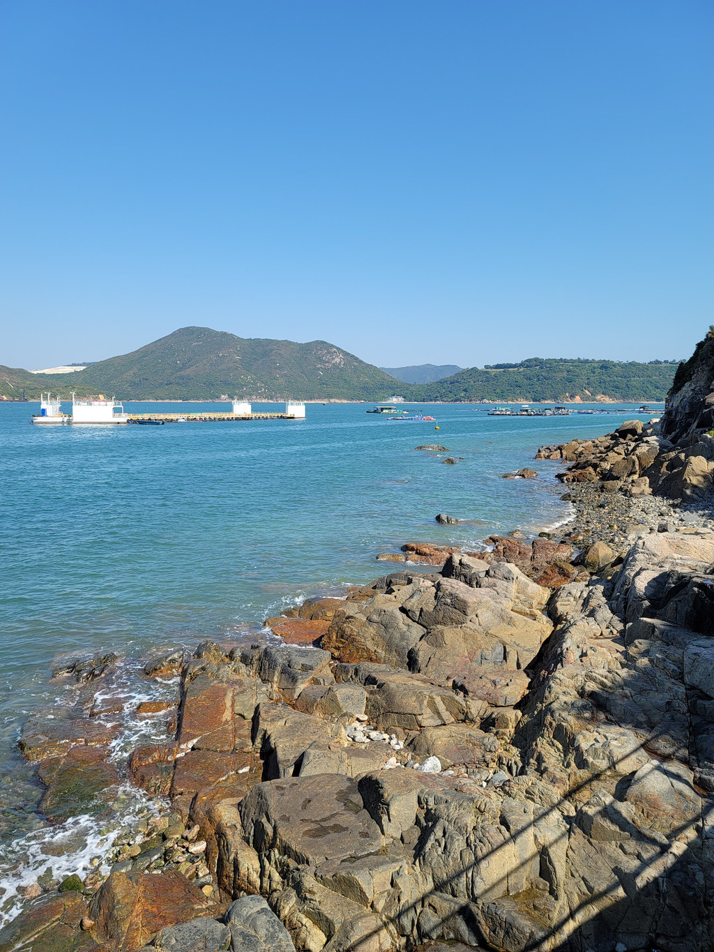 回程路上看见有人从另一条路下来,似乎比我们来时的路短,我们决定沿石而上,难度比我们之前走的路更陡峭,几乎是垂直的,不过在合力之下,我们终于还是登上了山顶。再之后的道路就恢复水泥路面了,对于已经面对过困难路况挑战的我们,几乎如履平地。在上船前,还有时间可以再在码头附近的士多享用个下午茶。这里的景致,特别是海岸悬崖边的景致,加上湛蓝的天空,真的会让自己忘记了身处香港,难怪周末这么多人来这座外岛放松自己。