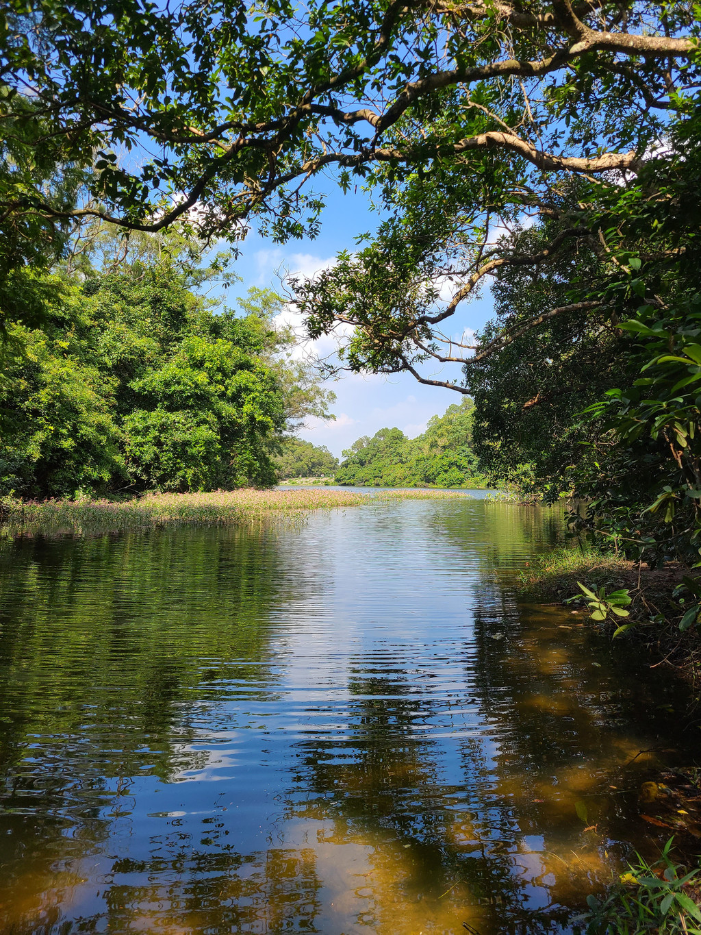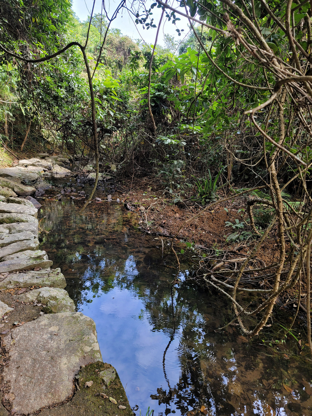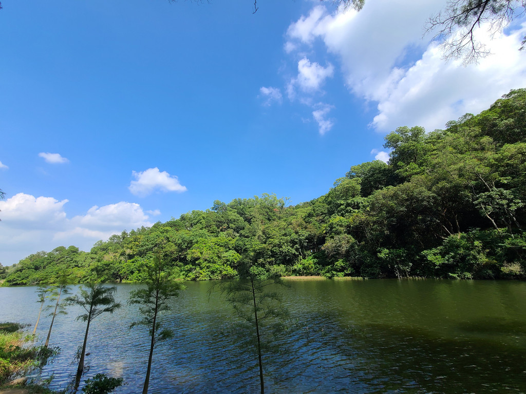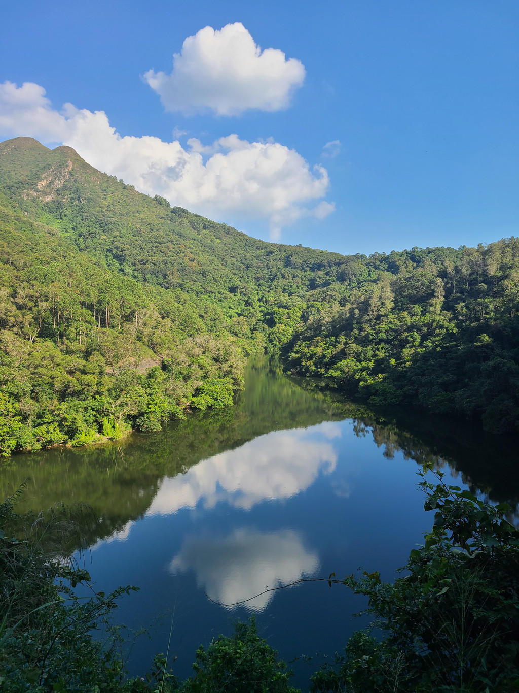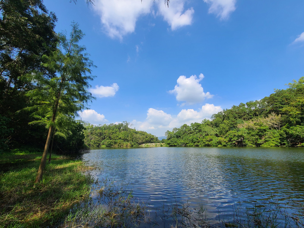 流水响水塘和鹤薮水塘,是一条轻轻松松的徒步路线,包括两个水塘和一小段山路,大部分路途都有树木覆盖,而且大部分路途并没有多少行人,可以慢行慢睇,呼吸山野间的清新空气。流水响水塘,成名于水边的一排排白千层树,据说浓冬时节,树叶会变成橙黄色,不过现在还是绿意盎然,无风自静的水塘倒影着蓝天,山谷,树木,一派田园诗意。